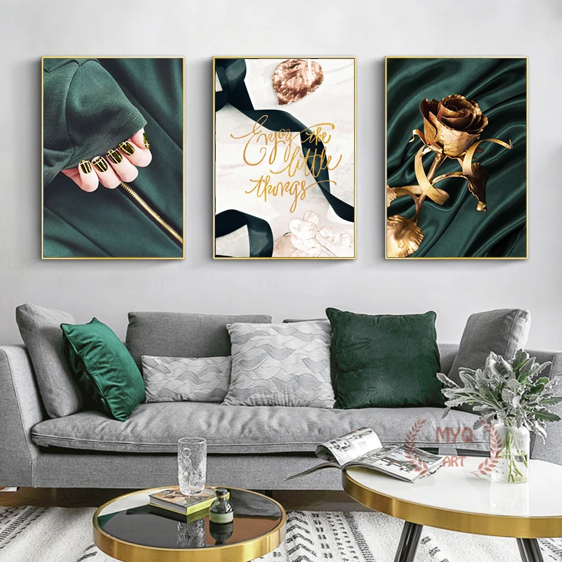Минималистичная абстрактная Золотая фольга, зеленая стена, плакат, ...
