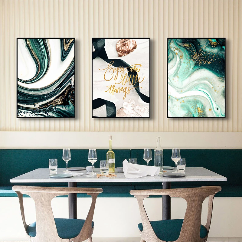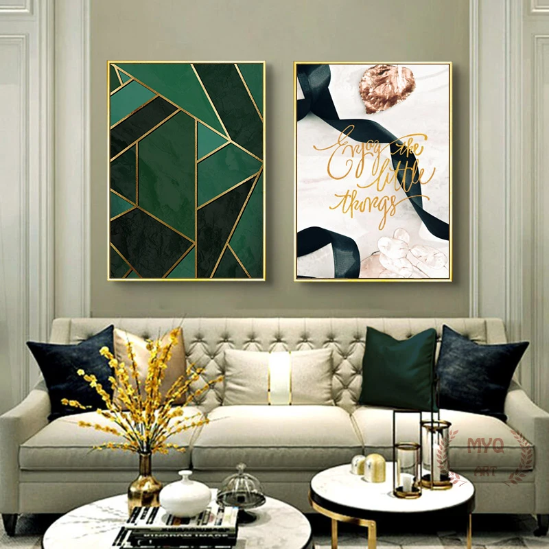 Абстрактная зеленая Золотая синяя Настенная картина золотая линия с...