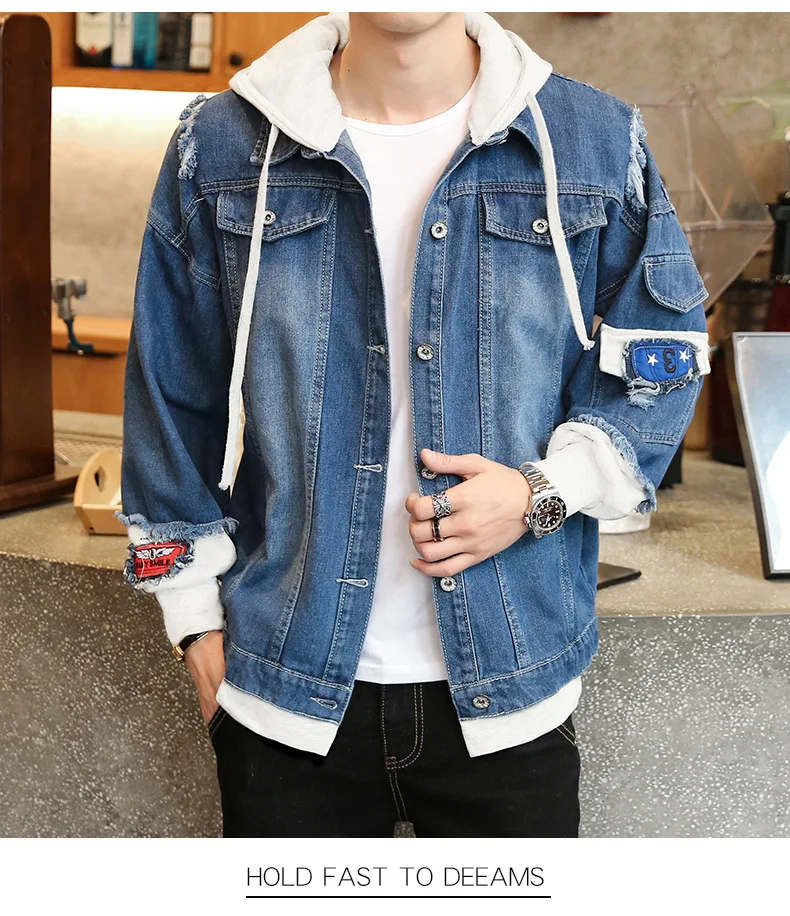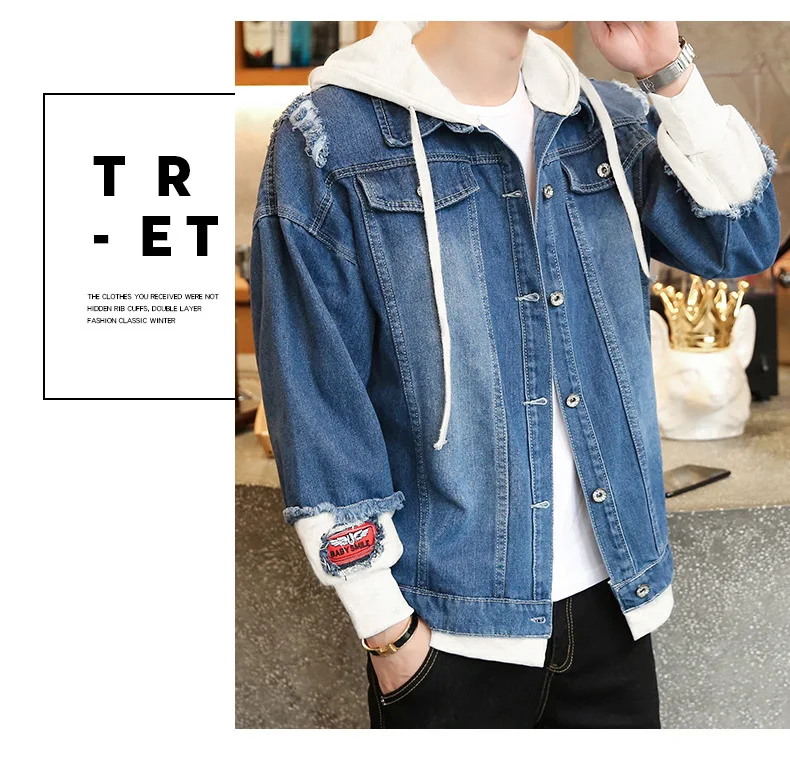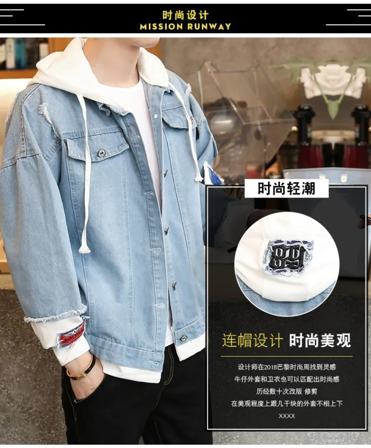 Куртка мужская джинсовая с капюшоном, уличная одежда в стиле хип-хоп, Повседневная Свободная верхняя одежда, облегающее пальто, весна 2021