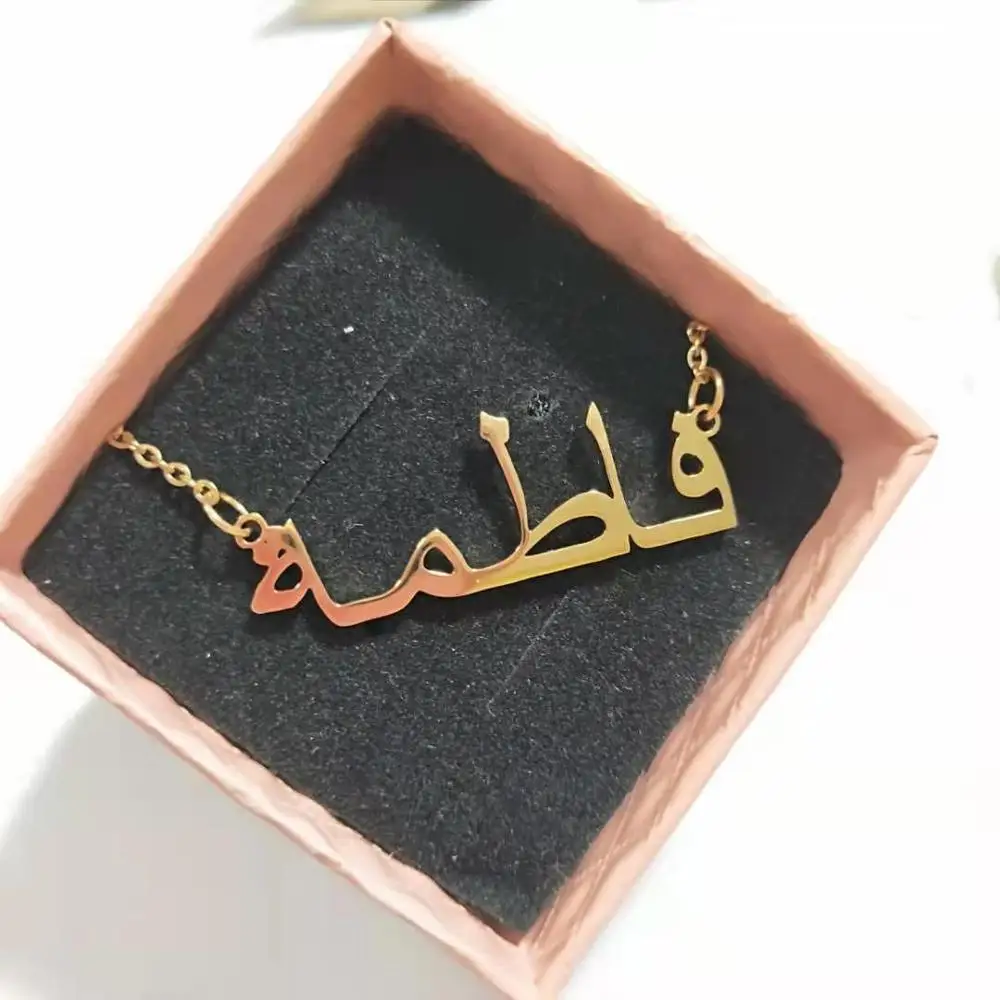 Ислам ювелирные изделия персонализированный шрифт кулон ожерелья из нержавеющей стали Золотая цепочка на заказ арабское имя ожерелье женщины подарок подружки невесты
