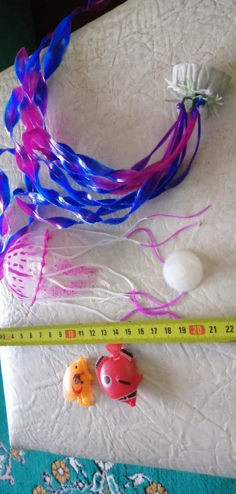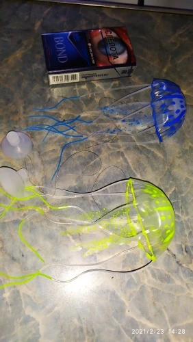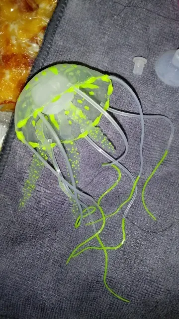 классная медуза,в темноте конечно не светится,но сама яркая. быстрая доставка