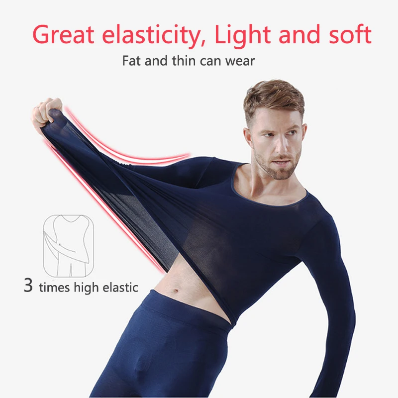 Бесшовное эластичное термобелье-это пара дышащего нижнего белья с автономным нагревом, которое согревает вас в холодное время года. Изготовлен из новейшего нано-переплетения, который регулирует температуру тела при 37 градусах. На 65% теплее, чем обычно.