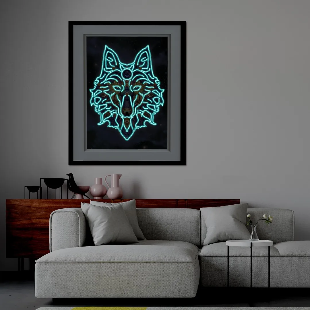 Волк узор светящаяся роспись алмазная живопись особой формы Алмазны...