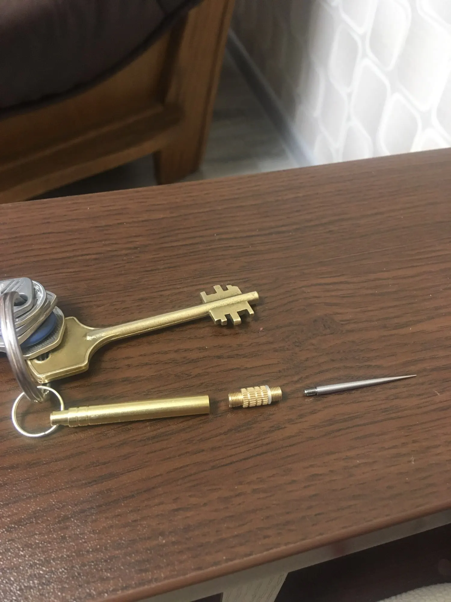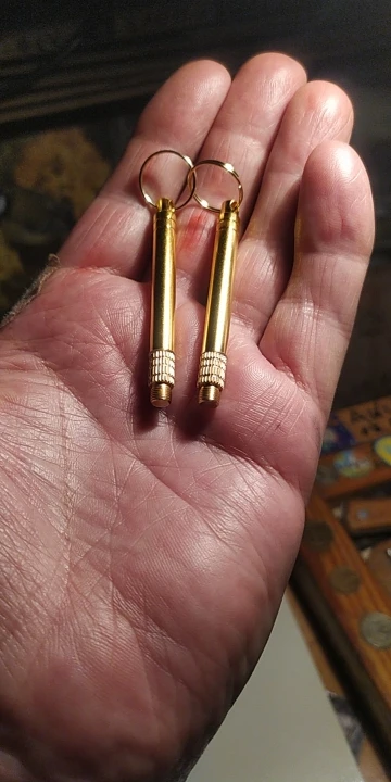 Куплены 2 шт по цене за 65р/шт. Доставка 0р за три недели. Хорошие карманные "зубочистки". Легко прячутся в кулаке. В собранном виде ничем не выделяющийся брелочек - безделушка. Из всех деталей сильно магнитится только колечко. Остальные еле-еле. Удачи всем!!!