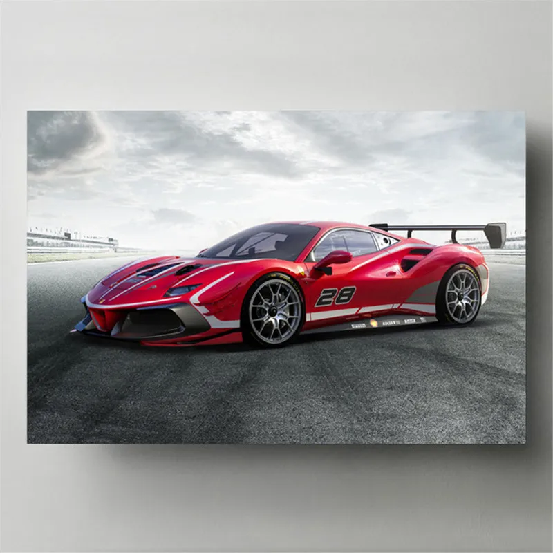 Современные картины на холсте Ferraris 488 вызов Evo гоночный автомобиль плакат на стену картины для гостиной Декор без рамки