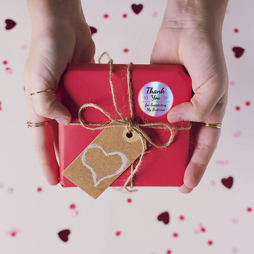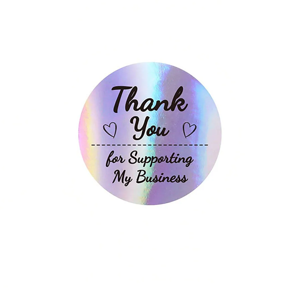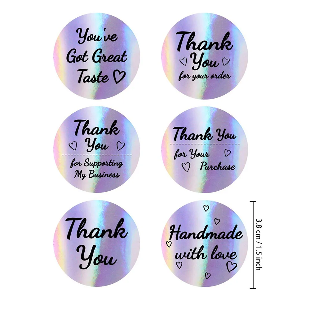 1,5 дюймовые круглые наклейки с надписью Thank You, клейкие голографические наклейки, радужные наклейки для бизнеса, магазина, упаковочные принадлежности, печать
