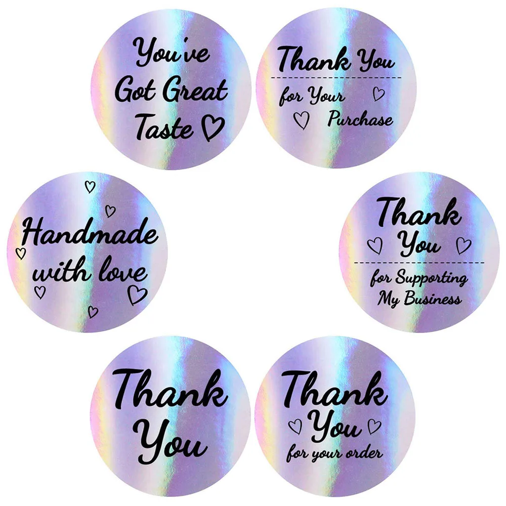 1,5 дюймовый круглый спасибо этикетки стикеры Самоклеющиеся голографические наклейки радуги для Бизнес магазин упаковка поставки уплотнение