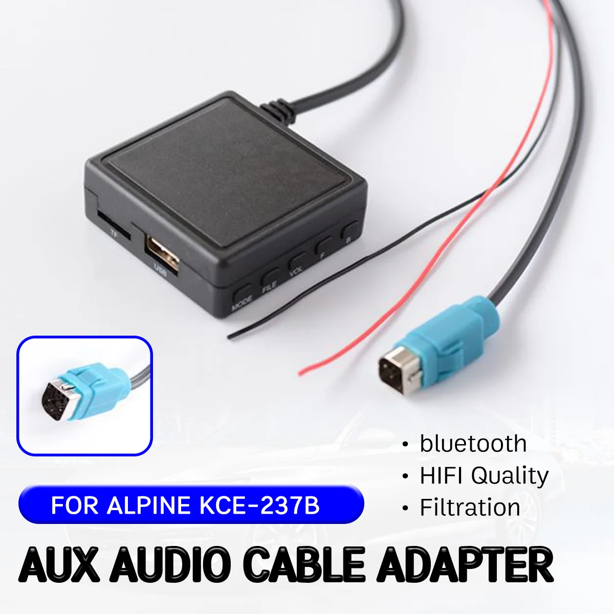 Bluetooth Aux-приемник, Кабель-адаптер с USB, микрофоном, громкой связи, Hi-Fi аудио интерфейс для Alpine 2009 + CDE-W203Ri для KCE-237B