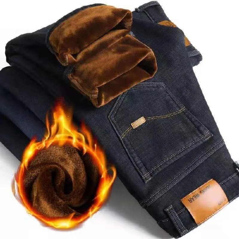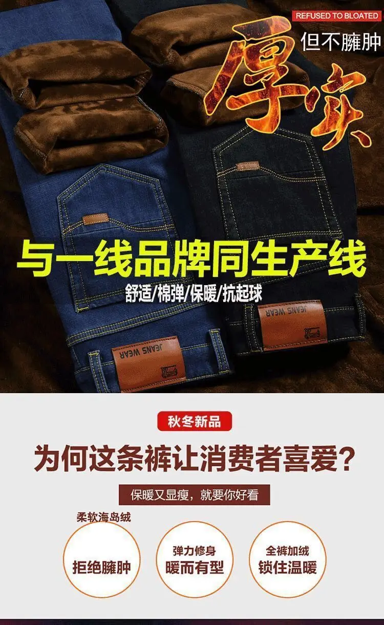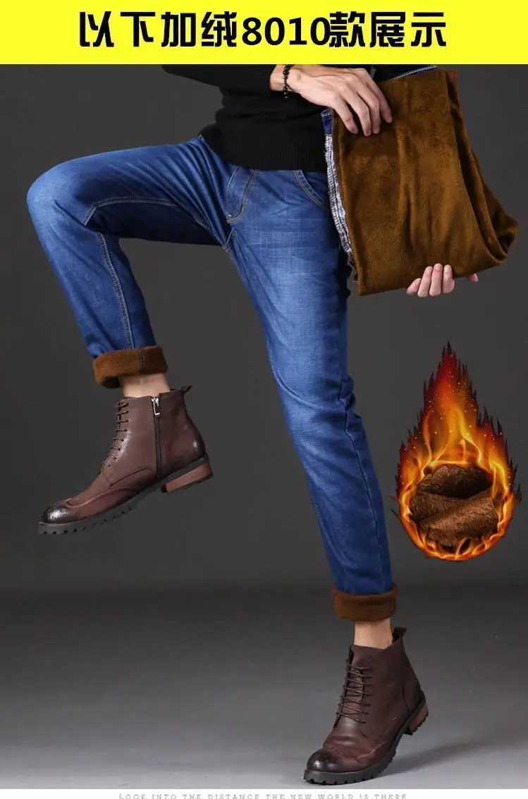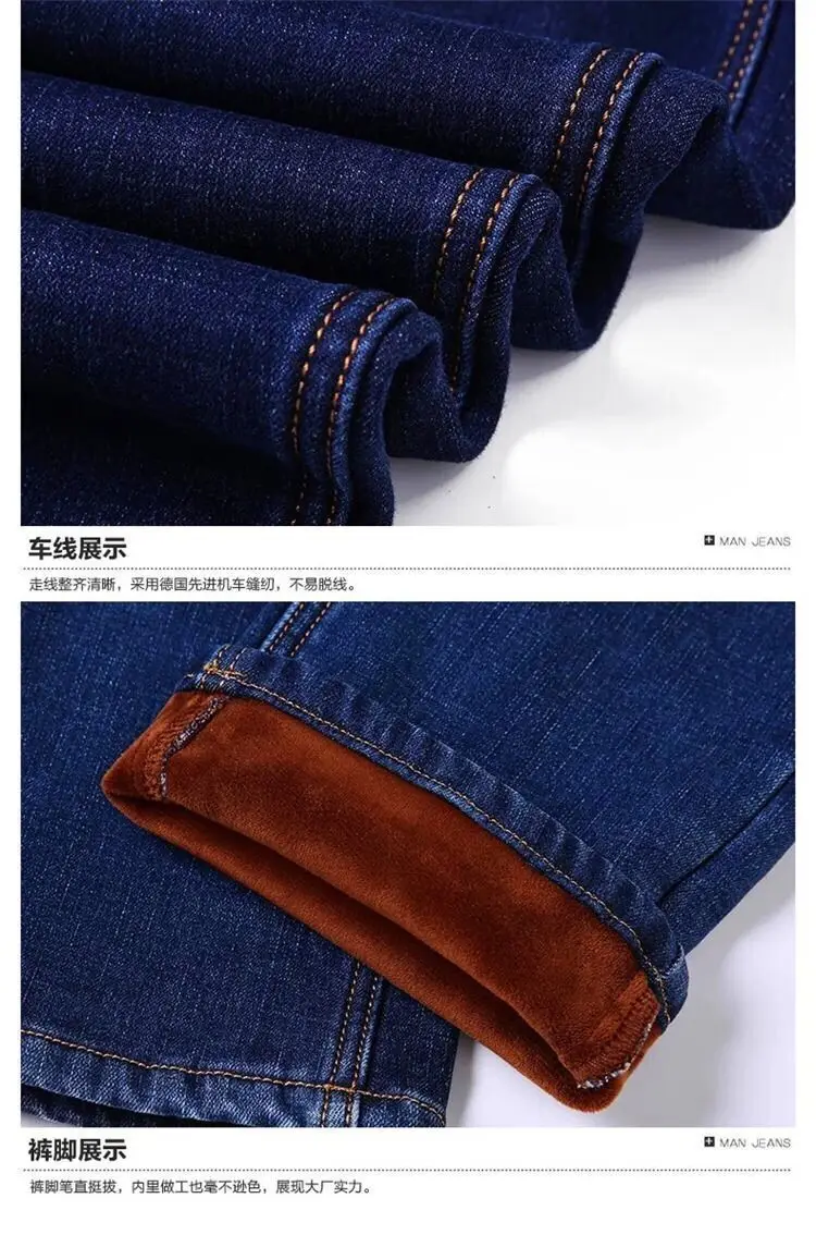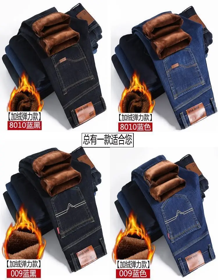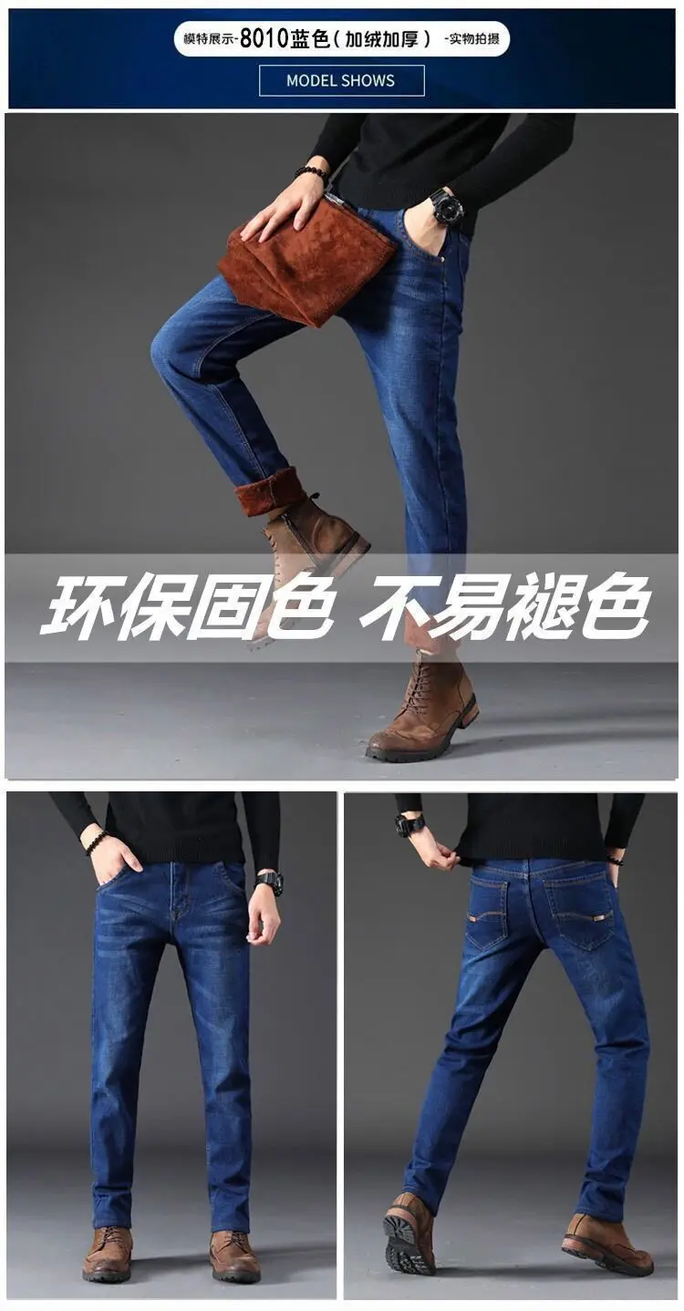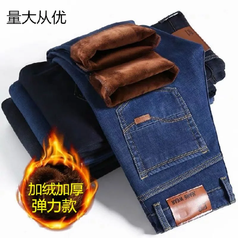 2021 осень и зима эластичные мужские джинсы мужские прямые свободные повседневные штаны осень большие мужские штаны с плюшем утолщение