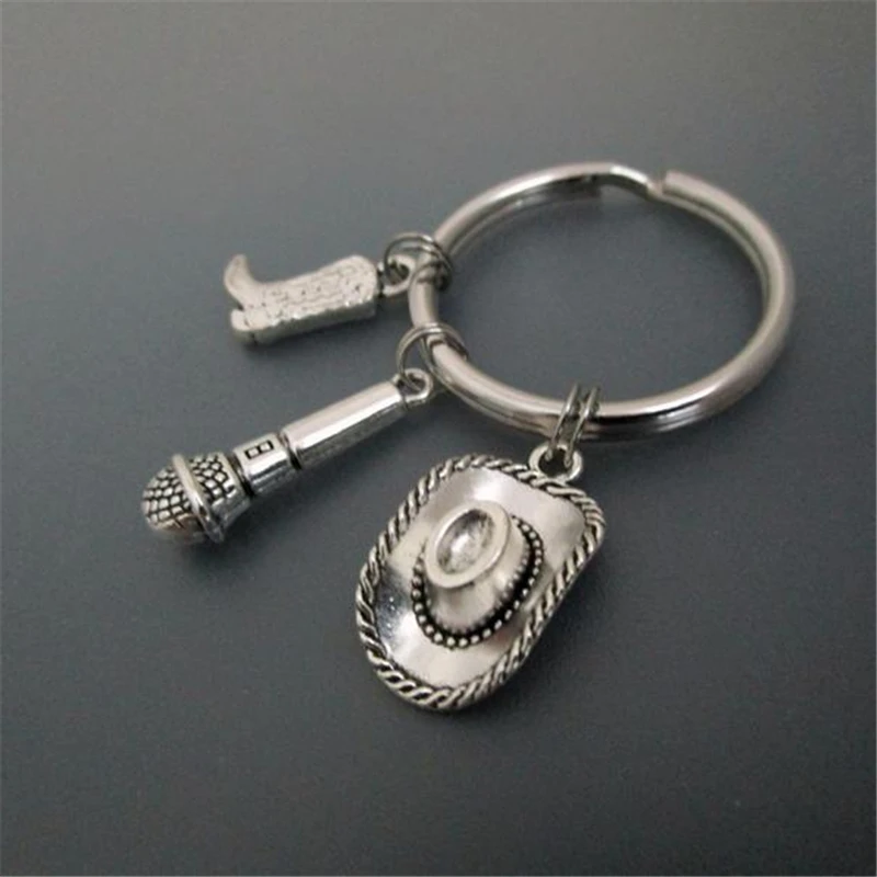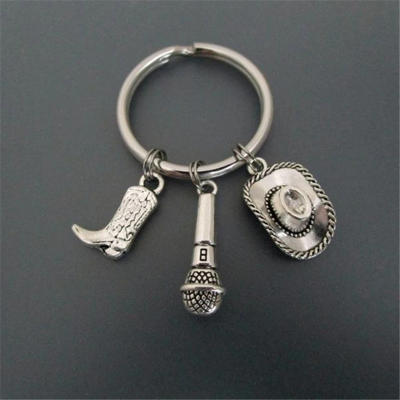 Кантри брелок микрофон кольцо для ключей в ковбойском стиле аксессуары брелок в виде микрофона