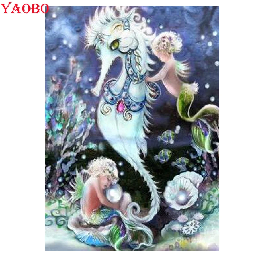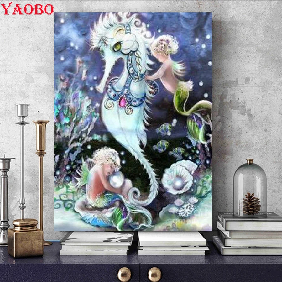 5D Алмазная мозаика, полная вышивка, квадратныекруглые алмазы, маленькая Русалочка, морская лошадь, алмазная живопись, картина Стразы
