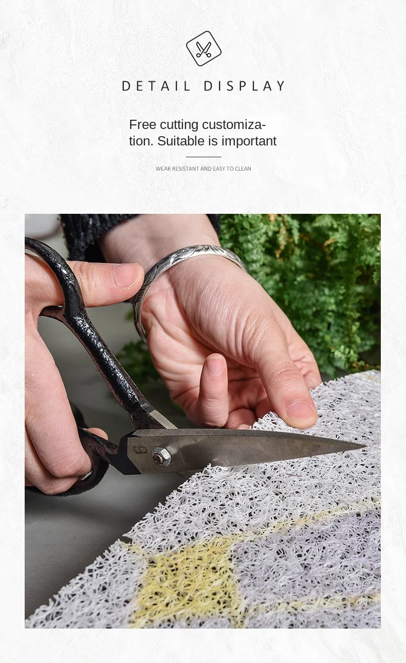 Коврик из ПВХ с шелковой петлей может предотвратить скольжение и защитить вашу безопасность, он может поглощать влагу из вашей обуви, чтобы сделать пол чистым и сухим, а также очистить от пыли, грязи, снега, И т. д.Его можно свободно разрезать на любые формы, которые вы хотите, и он подходит для внутреннего и наружного входа, прихожей, гостиной, спальни, ванной комнаты и т. д.Толщина коврика составляет около 8 мм, он может полностью лежать на полу и не препятствует открыванию и закрытию двери.Когда коврик заполнен частицами грязи, вы можете просто очистить его с помощью пылесоса или использовать водяной шланг в краску, а затем дать ему высохнуть на воздухе перед следующим использованием.