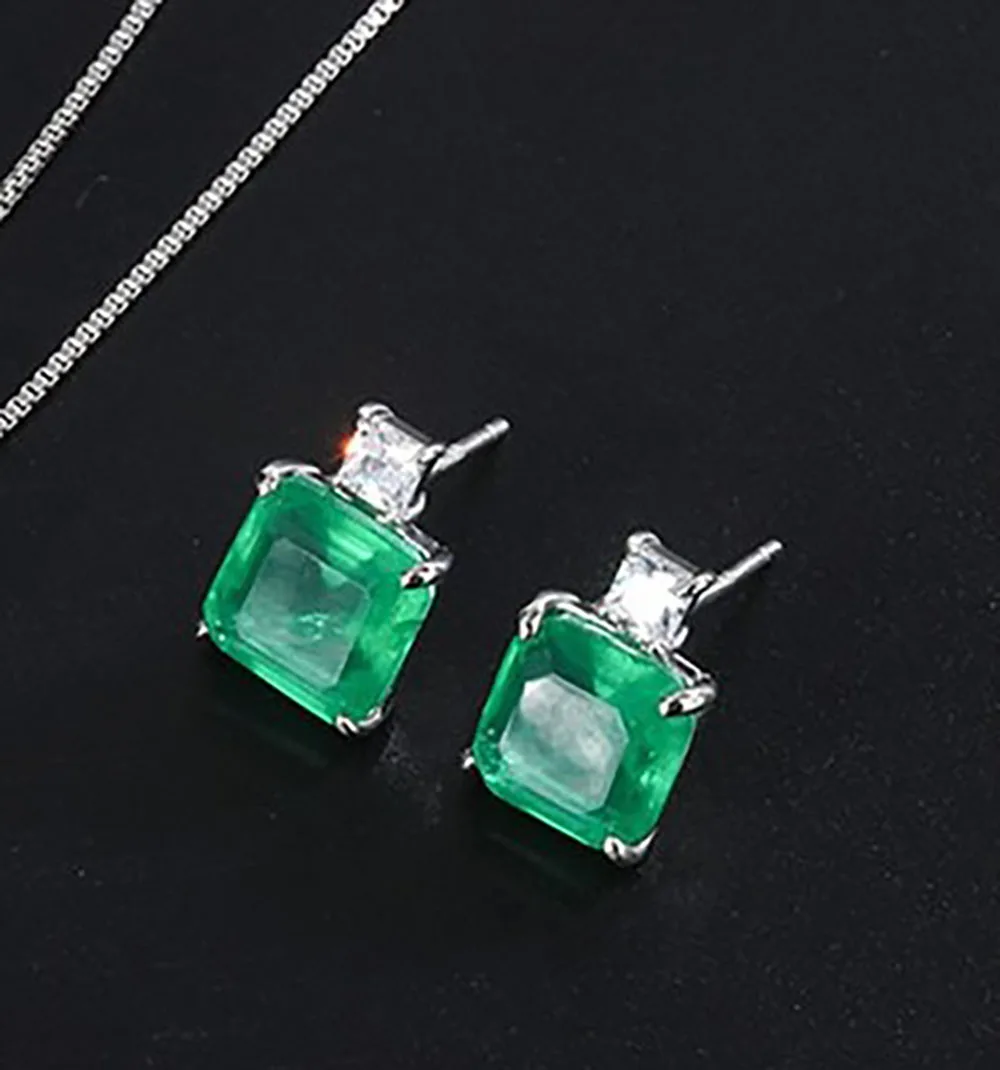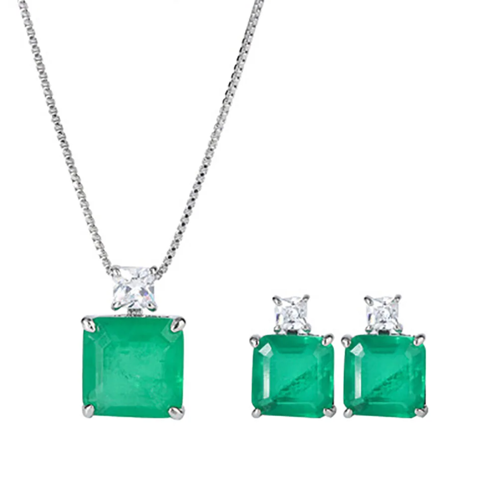Роскошный кулоножерельесерьги из серебра 925 пробы с имитацией Изумрудного камня, свадебные коктейльные Ювелирные наборы, подарок