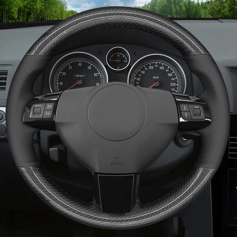 Черное углеродное волокно черный кожаный чехол рулевого колеса автомобиля для Vauxhall Astra Signum Vectra C) 2005-2009 Zaflra (B) 2005-2014