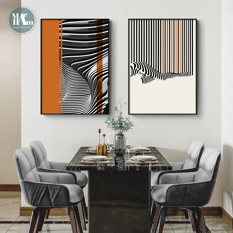 Современные абстрактные черно-белые линии, геометрические оранжевые настенные холст с печатью постера, живопись, художественное украшение для гостиной