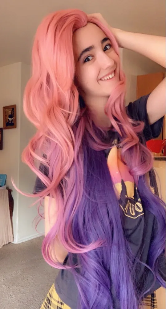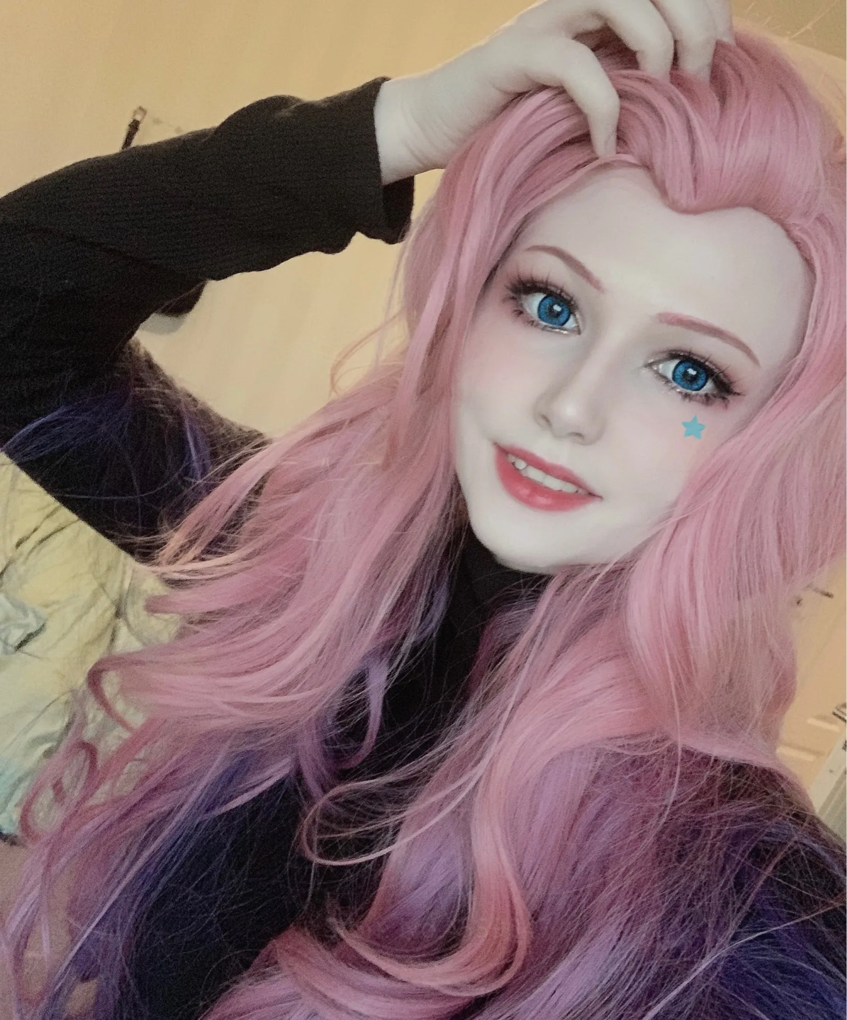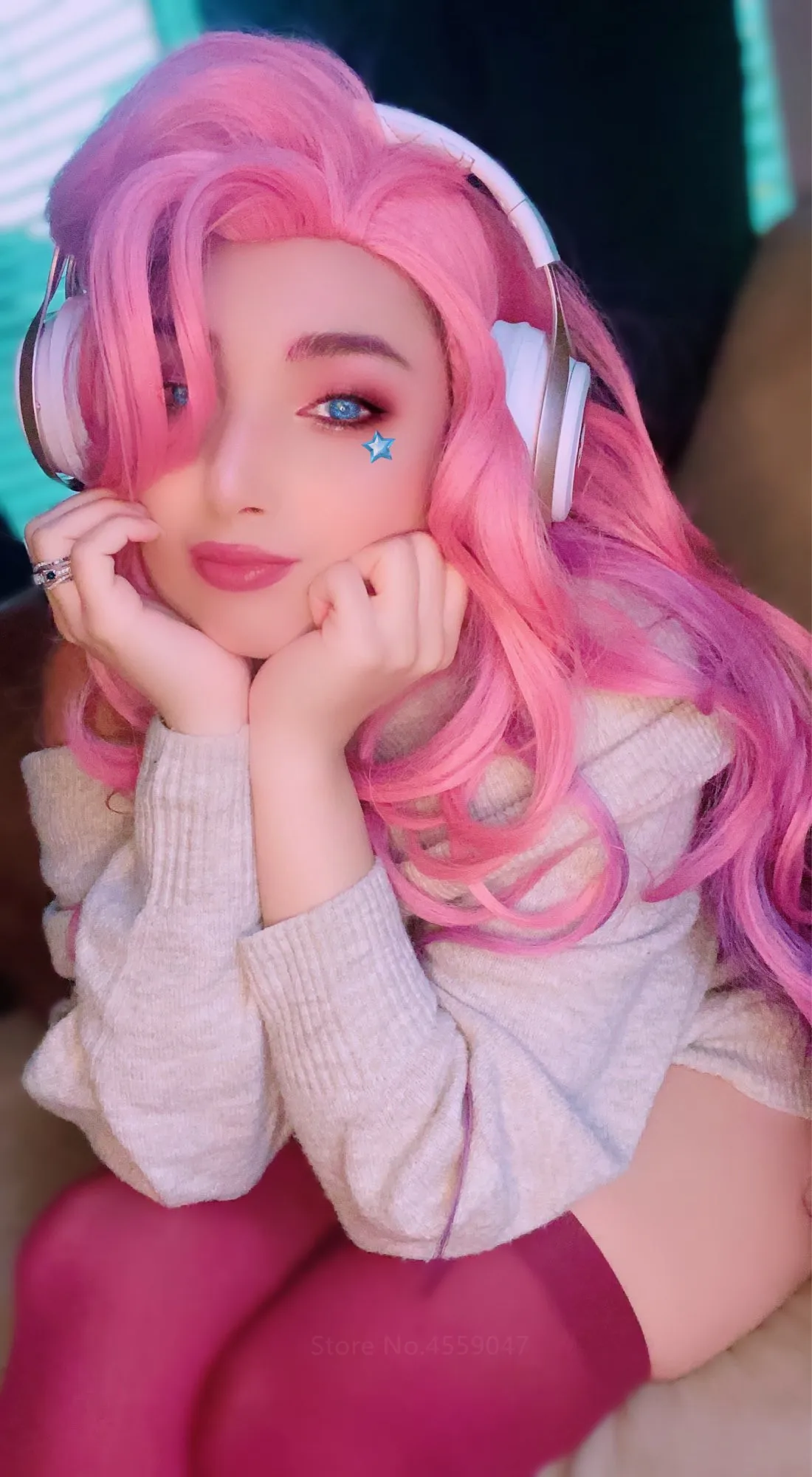 Парик для игр HSIU из Лиги Легенд, для косплея, серофина, цвет РОЗОВЫЙ, с градиентом, для мужчин