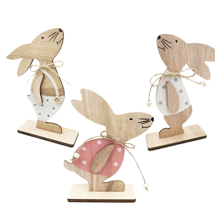 Пасхальное украшение, кролик, деревянный декор для домашнего стола,...