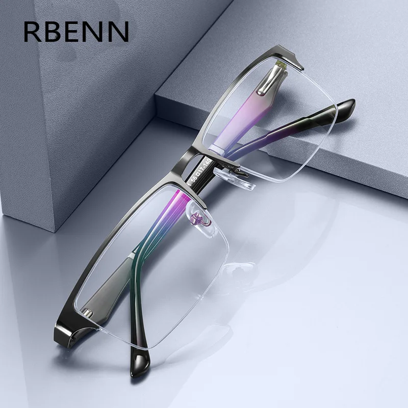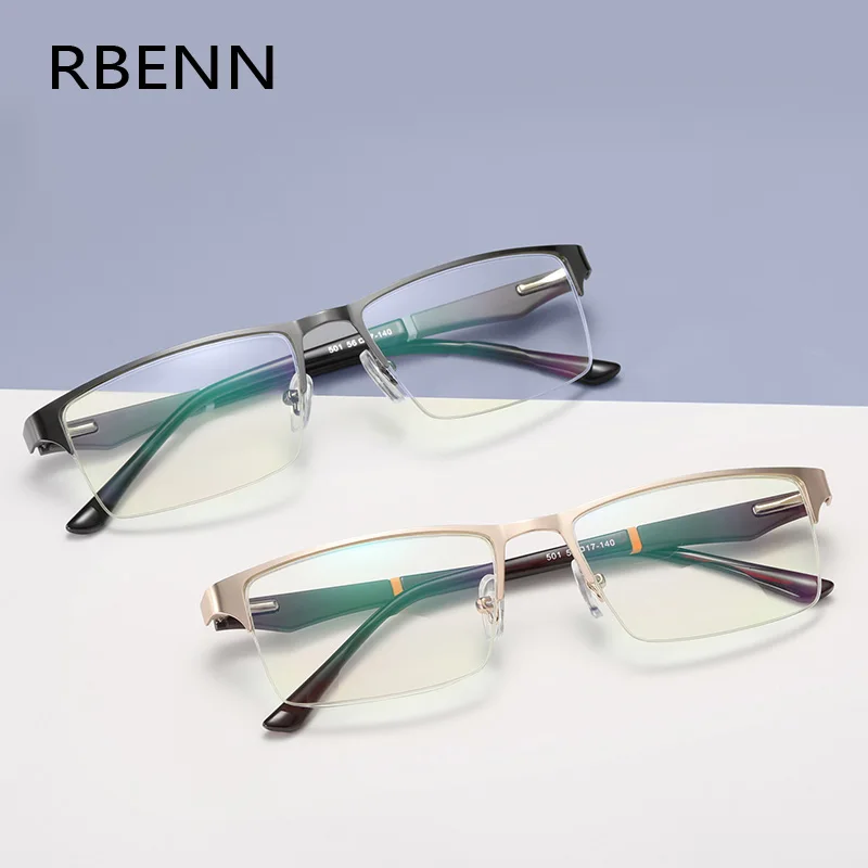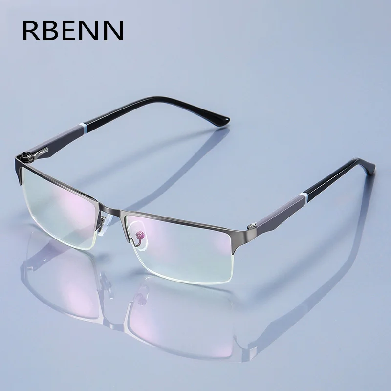 Очки для чтения RBENN мужские, брендовые дизайнерские очки для чтения с Anti Blue светильник полуоправой, деловые компьютерные очки с диоптриями + 0,75 1,5 1,75 2,75