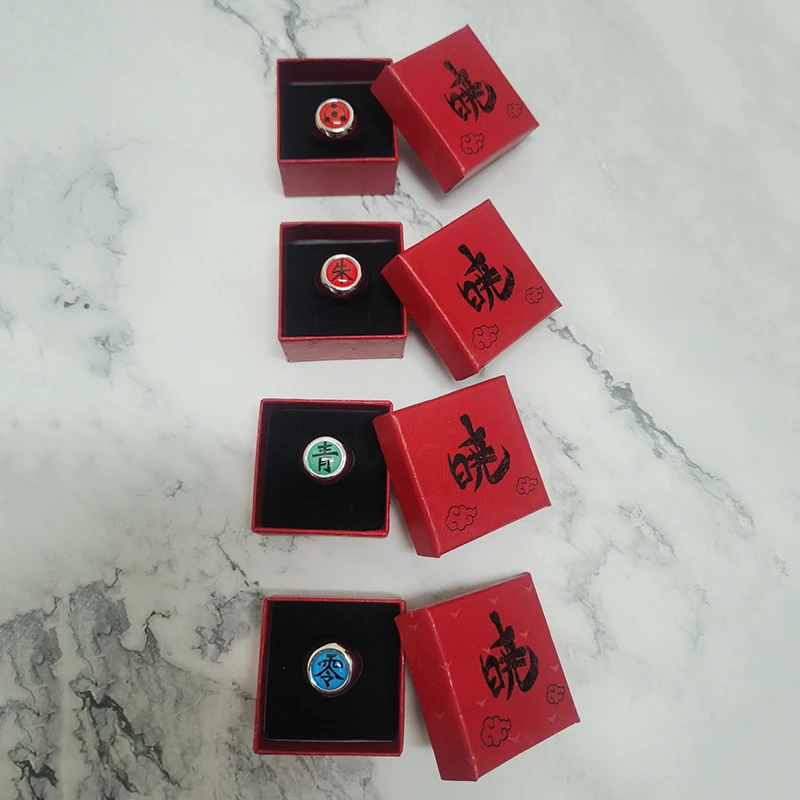 Аниме Косплей красное облако Организация лого печать кольца косплей реквизит Женщины Мужчины ювелирные изделия красная коробка упакованы