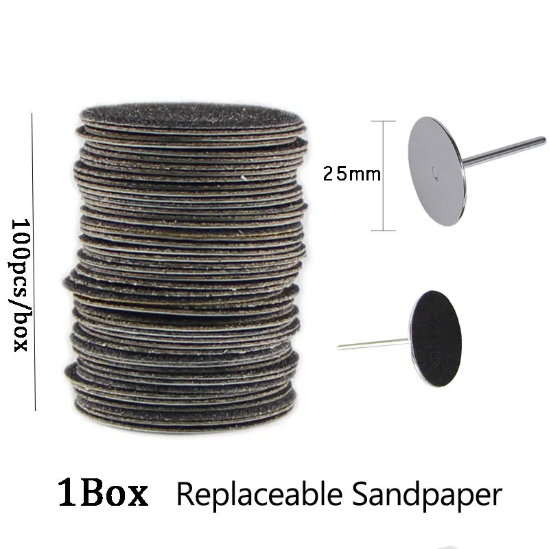 Сменные круги из шкурки, колодки для педикюра, 100 шт., наждачная бумага, 1 дисковый вал для жесткого удаления омертвевшей кожи, инструмент для педикюра