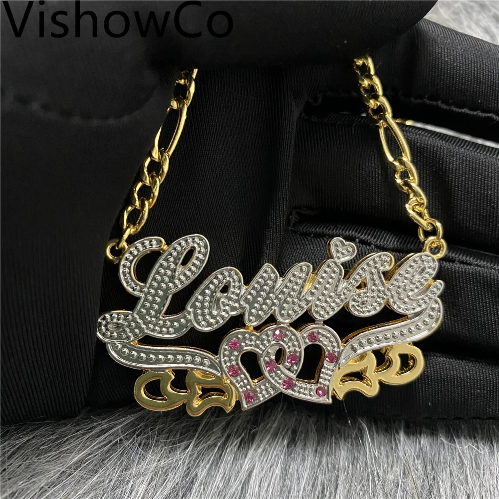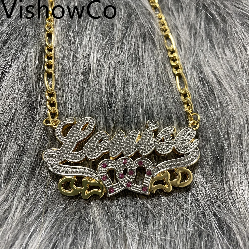 VishowCo циркониевое ожерелье с именем под заказ двойная позолоченн...