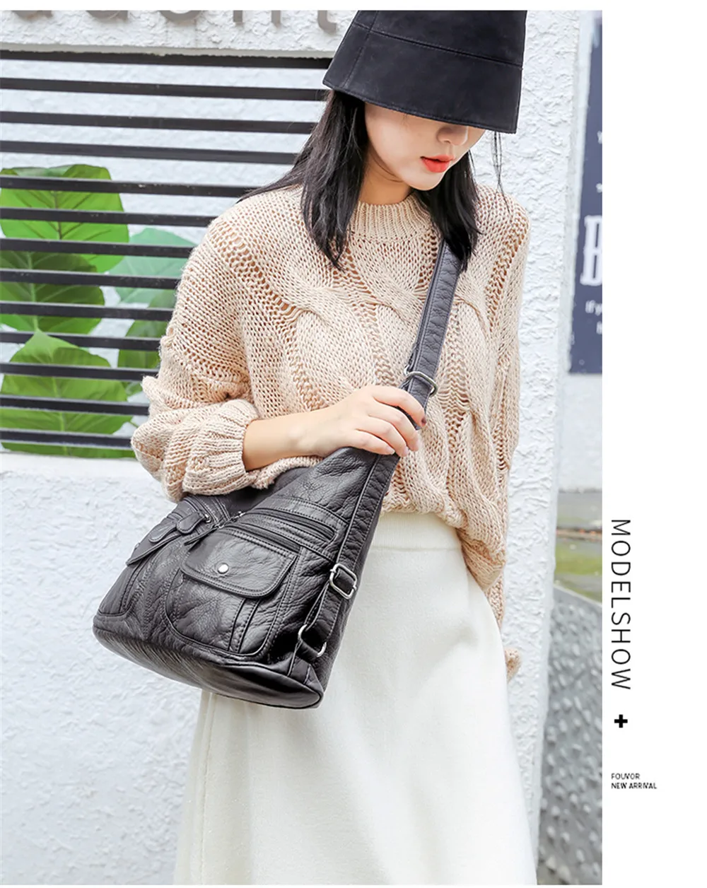 Сумка на плечо женская из натуральной кожи, роскошный саквояж на молнии, повседневный чемоданчик кросс-боди