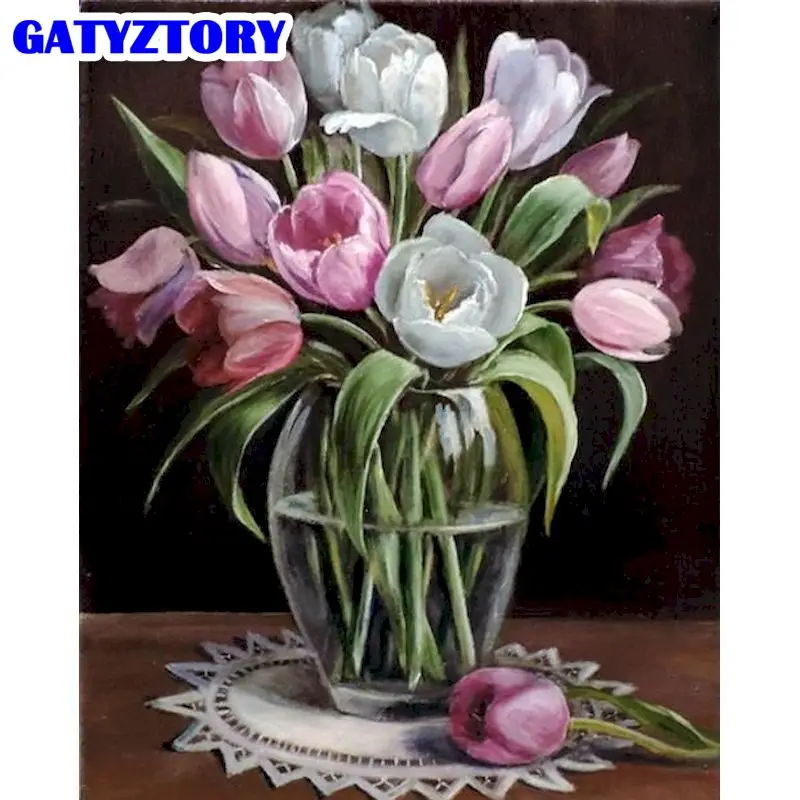 GATYZTORY 40x50 см картина по номерам для взрослых цветы в вазе укр...