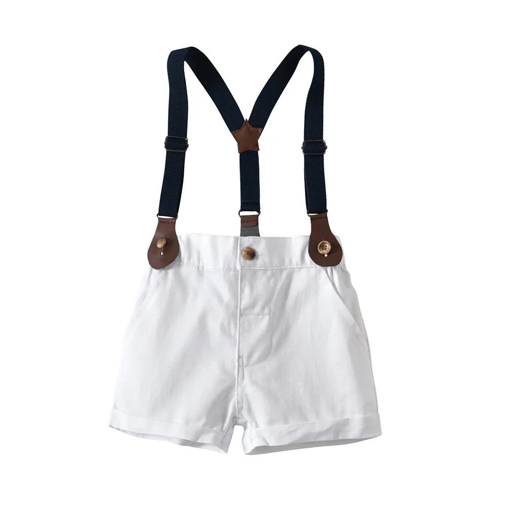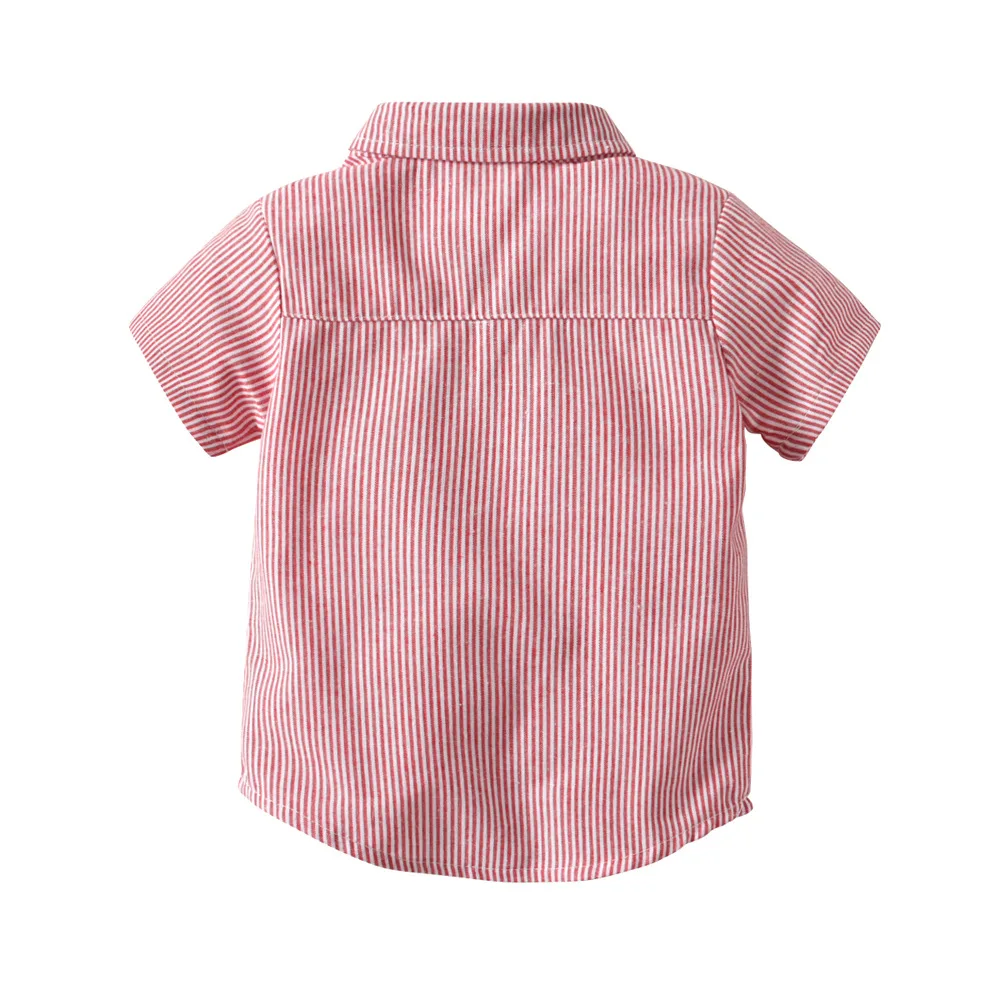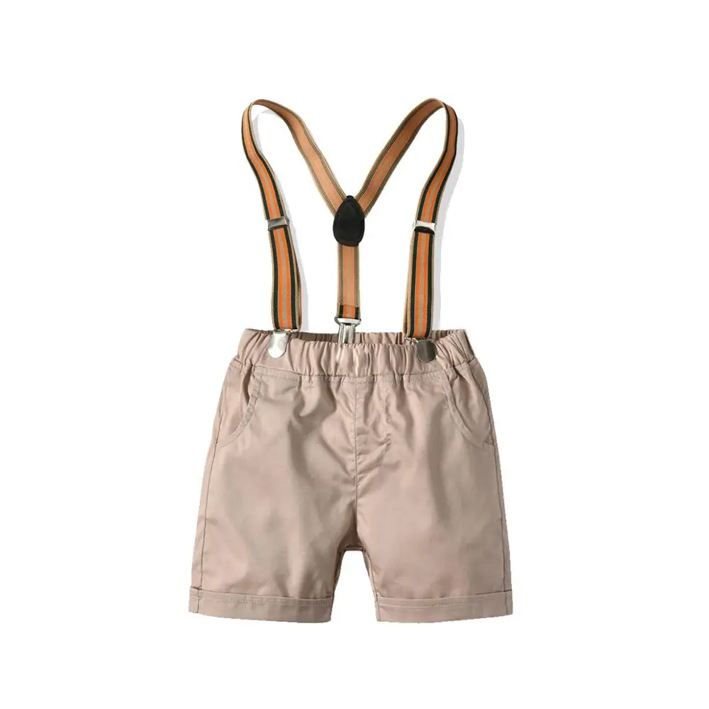 Детская одежда для мальчиков комплект одежды джентльмена летнее бело-розовая рубашка в полоску костюм шорты на подтяжках теплые Формальные малыша Ouffit От 1 до 6 лет