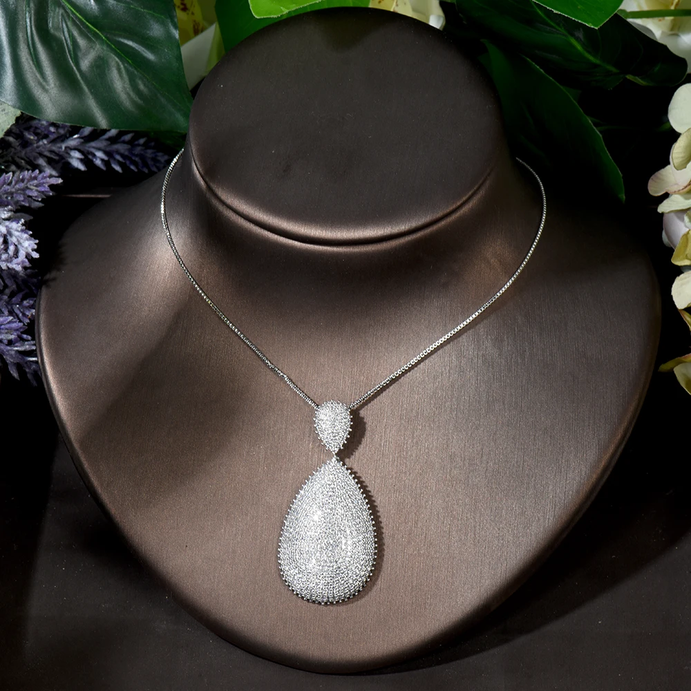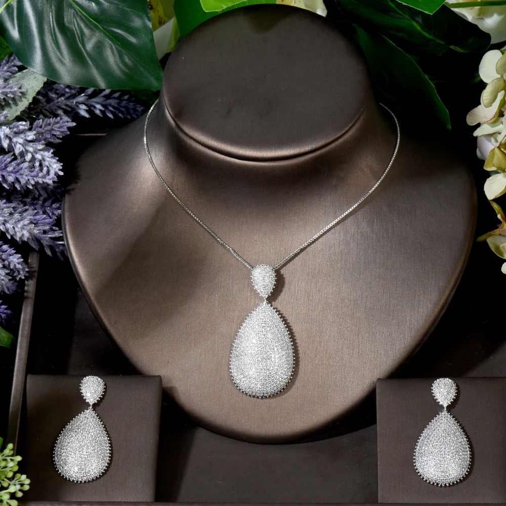 HIBRIDE Роскошный прозрачный кристалл циркония серьги и ожерелье на...