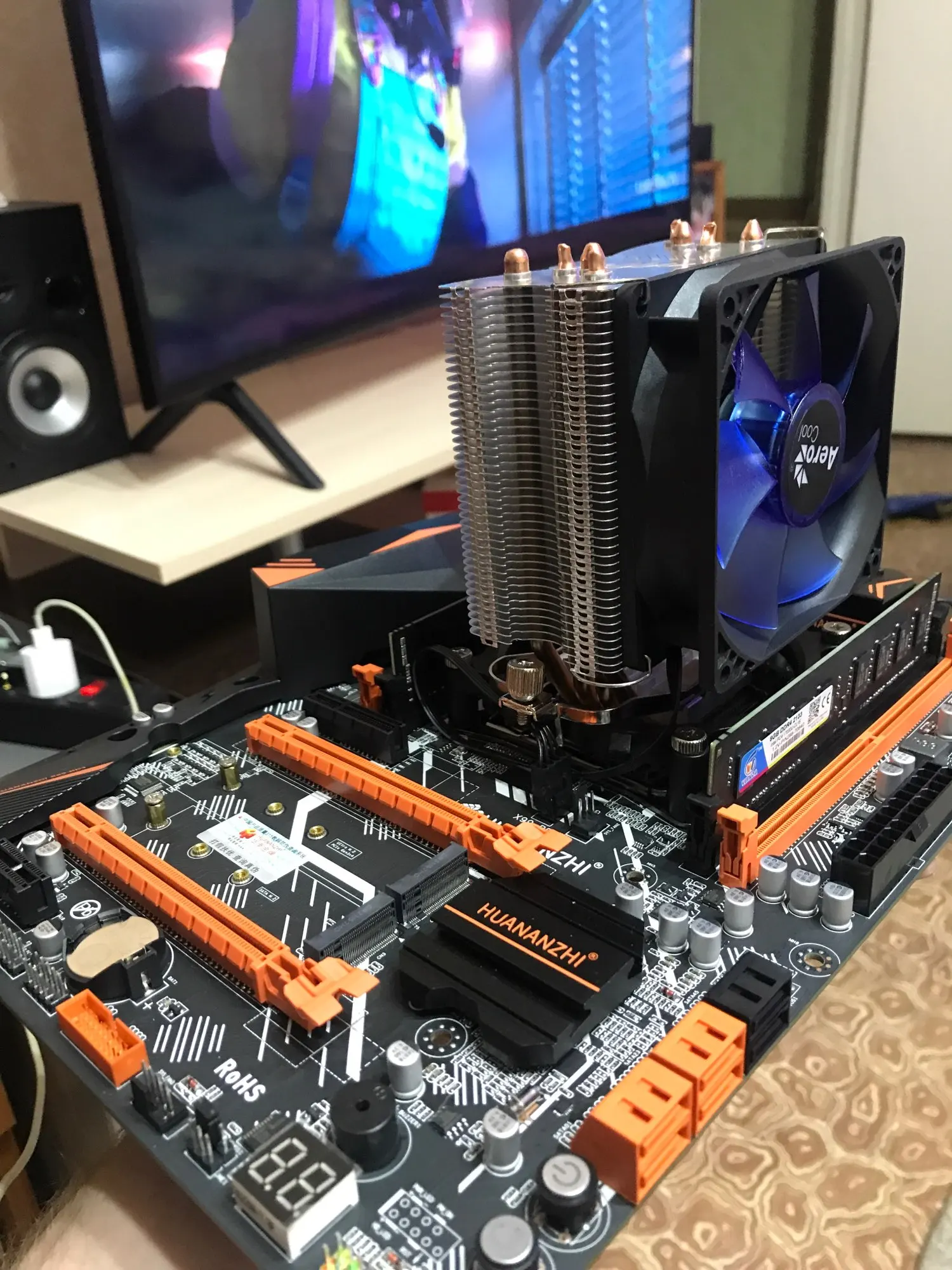 Товар пришёл быстро. Доставка была в отделение сбера, а он в моем городе не работает по выходным. Мне было не удобно ее забирать. Мать работает уже третий день, никаких проблем не заметил. Кулера на радиаторе шумноваты, но их можно отключить. Всем рекомендую к покупке.