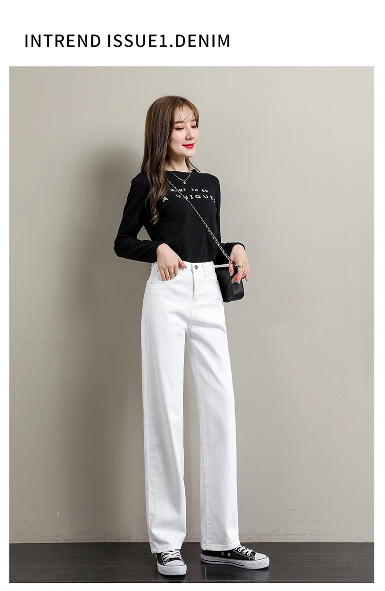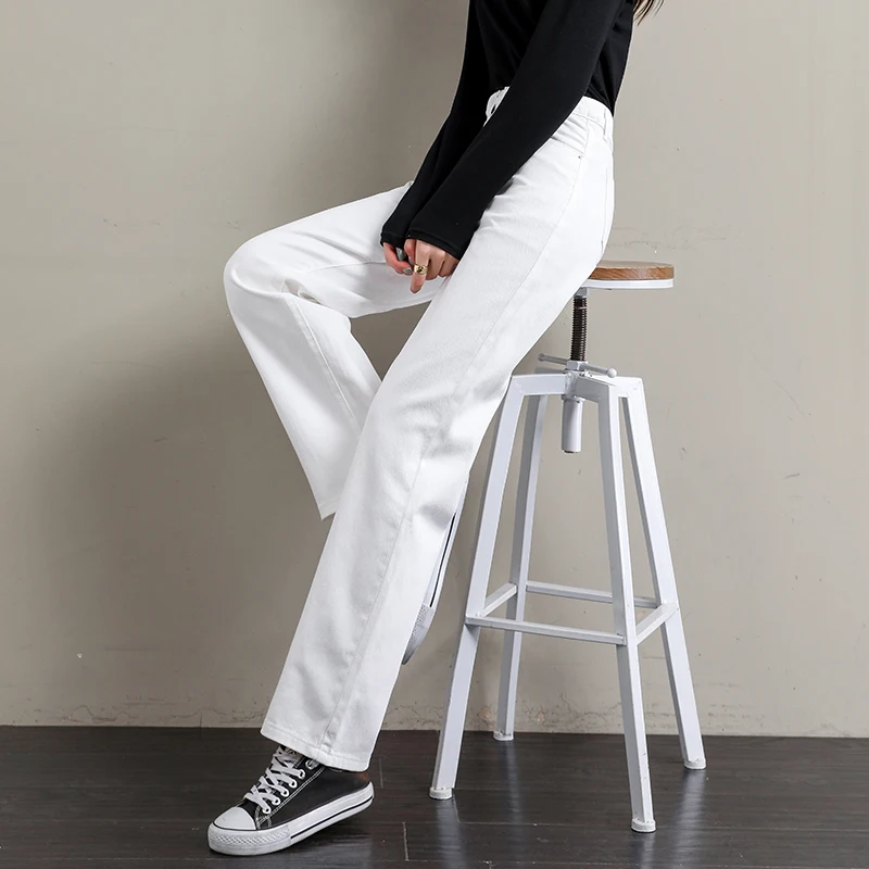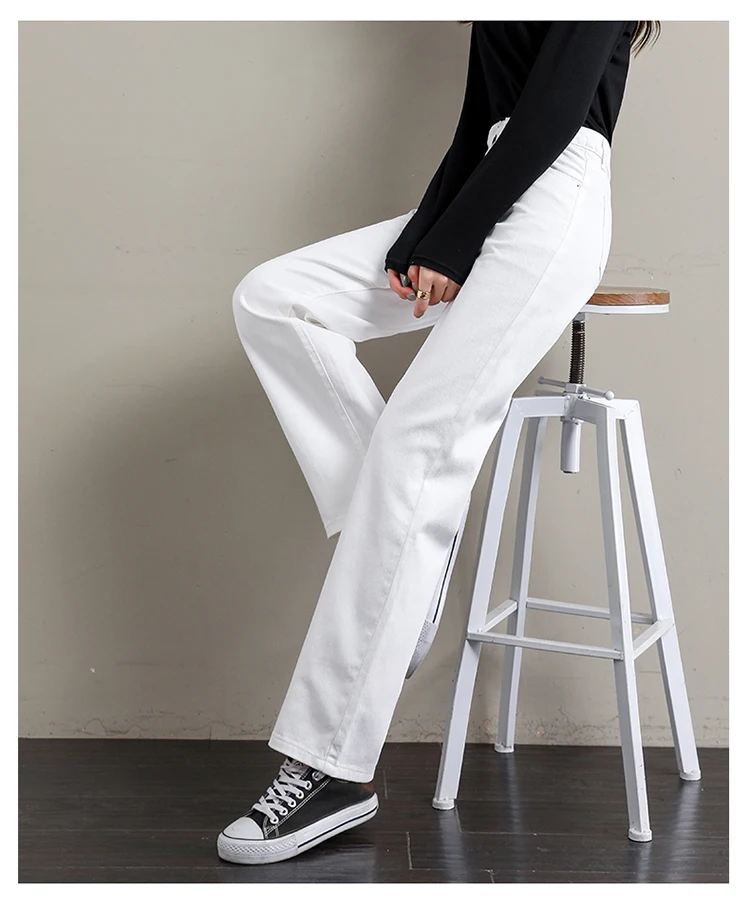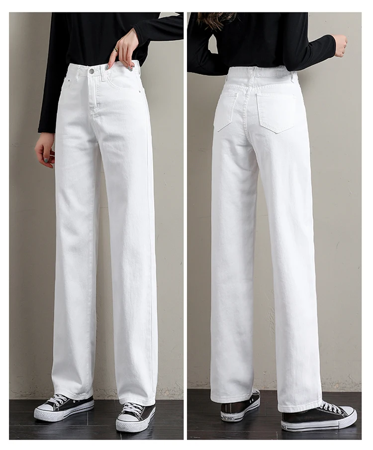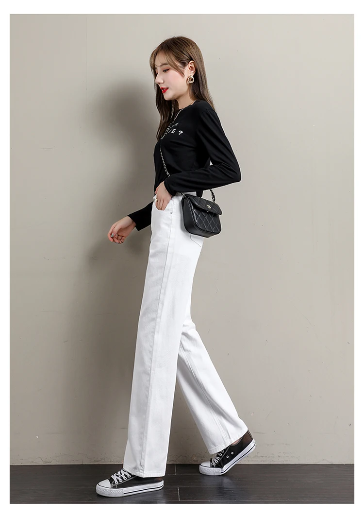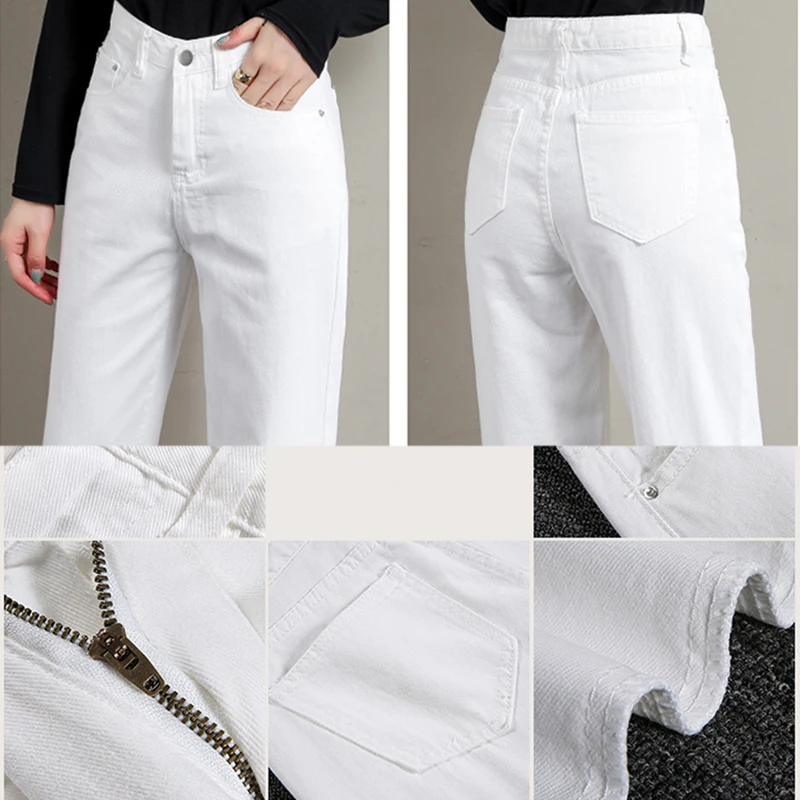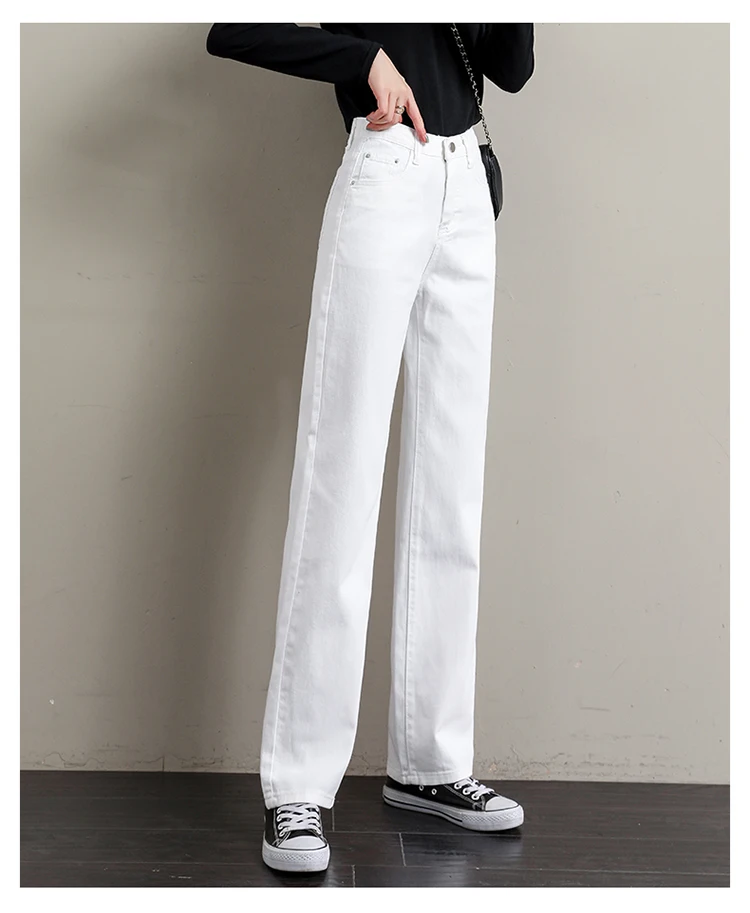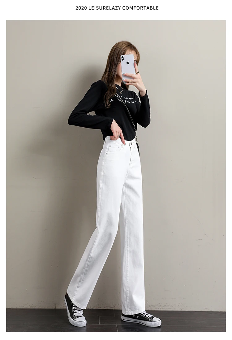 Джинсы женские с завышенной талией, штаны из денима с широкими штанинами, повседневные хлопковые брюки свободного покроя, белые