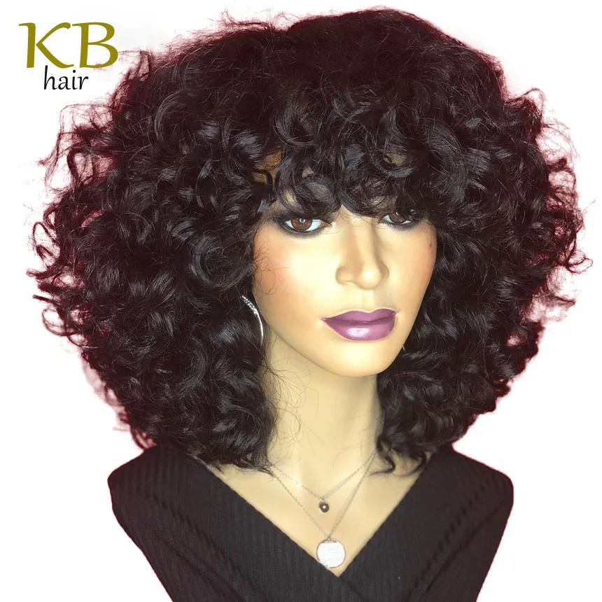 Надувные вьющиеся человеческие волосы, парик без шнуровки с челкой, парик из искусственной кожи головы, бразильские кудрявые парики без повреждений, плотность 200