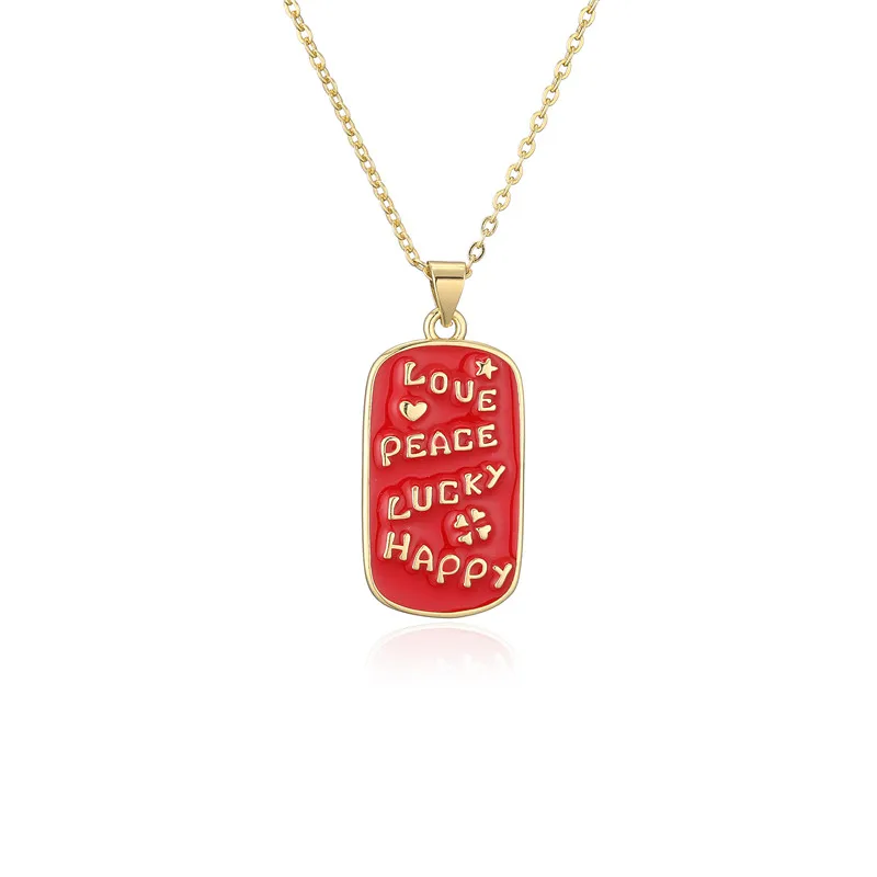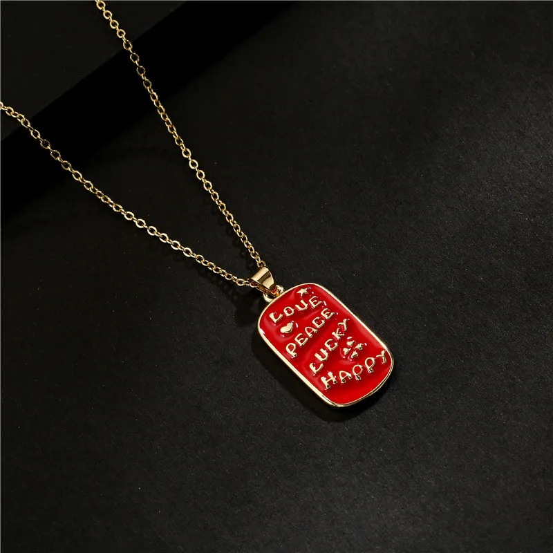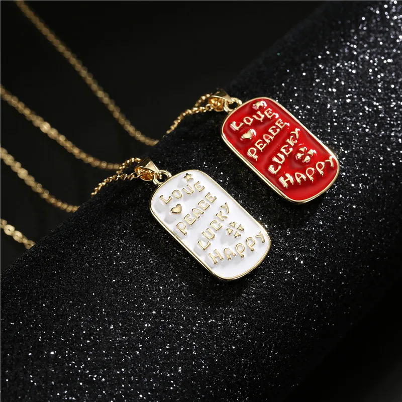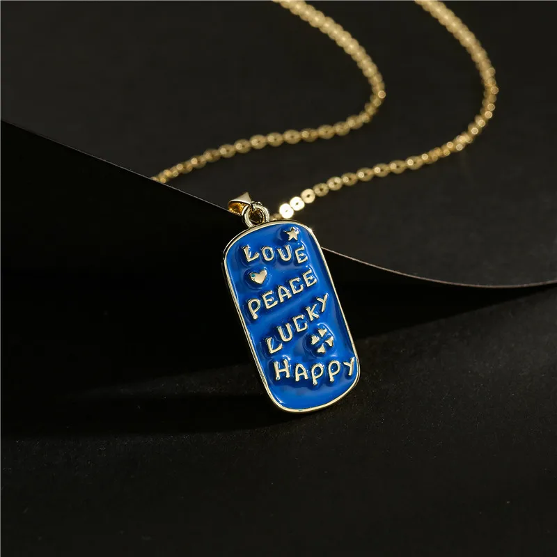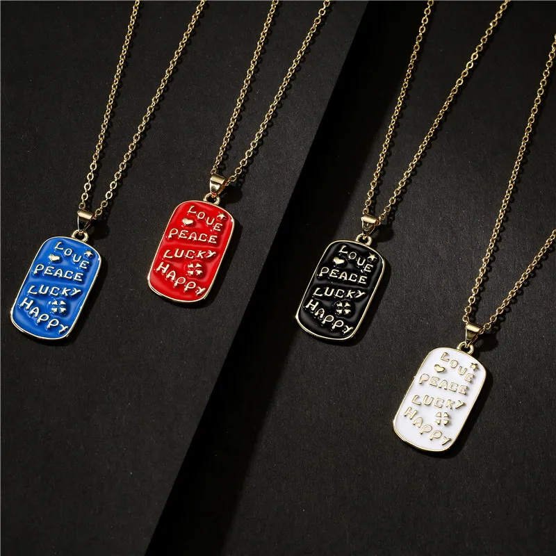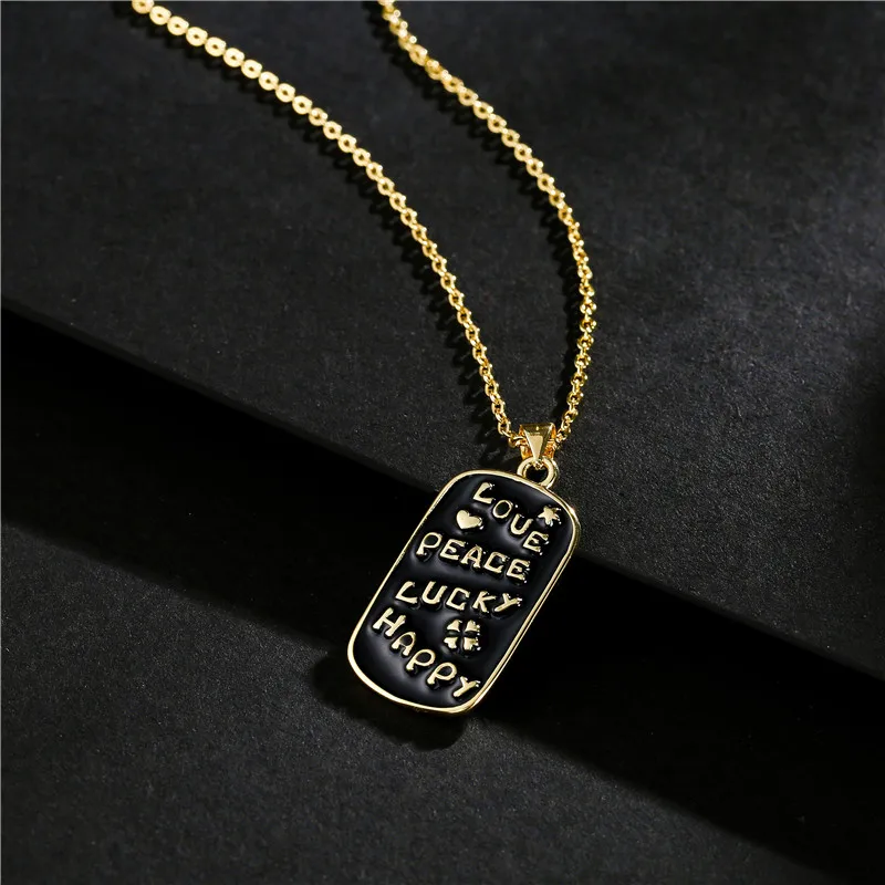 Цепочка с подвеской уникальный дизайн 2021, ожерелье с кулоном Love Peace Lucky Happy для женщин, мужчин, мальчиков и девочек, 4 цвета, золотая цепочка