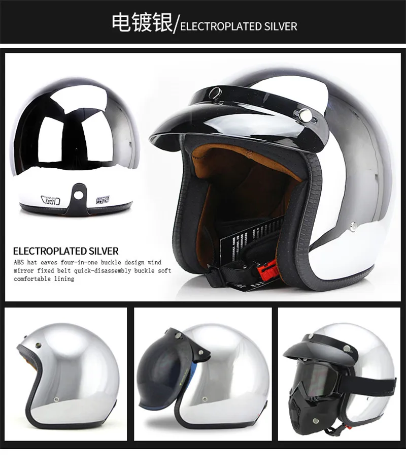 Мотоциклетный шлем Vespa, зеркальный, серебристый, хром, с открытым лицом, в стиле ретро