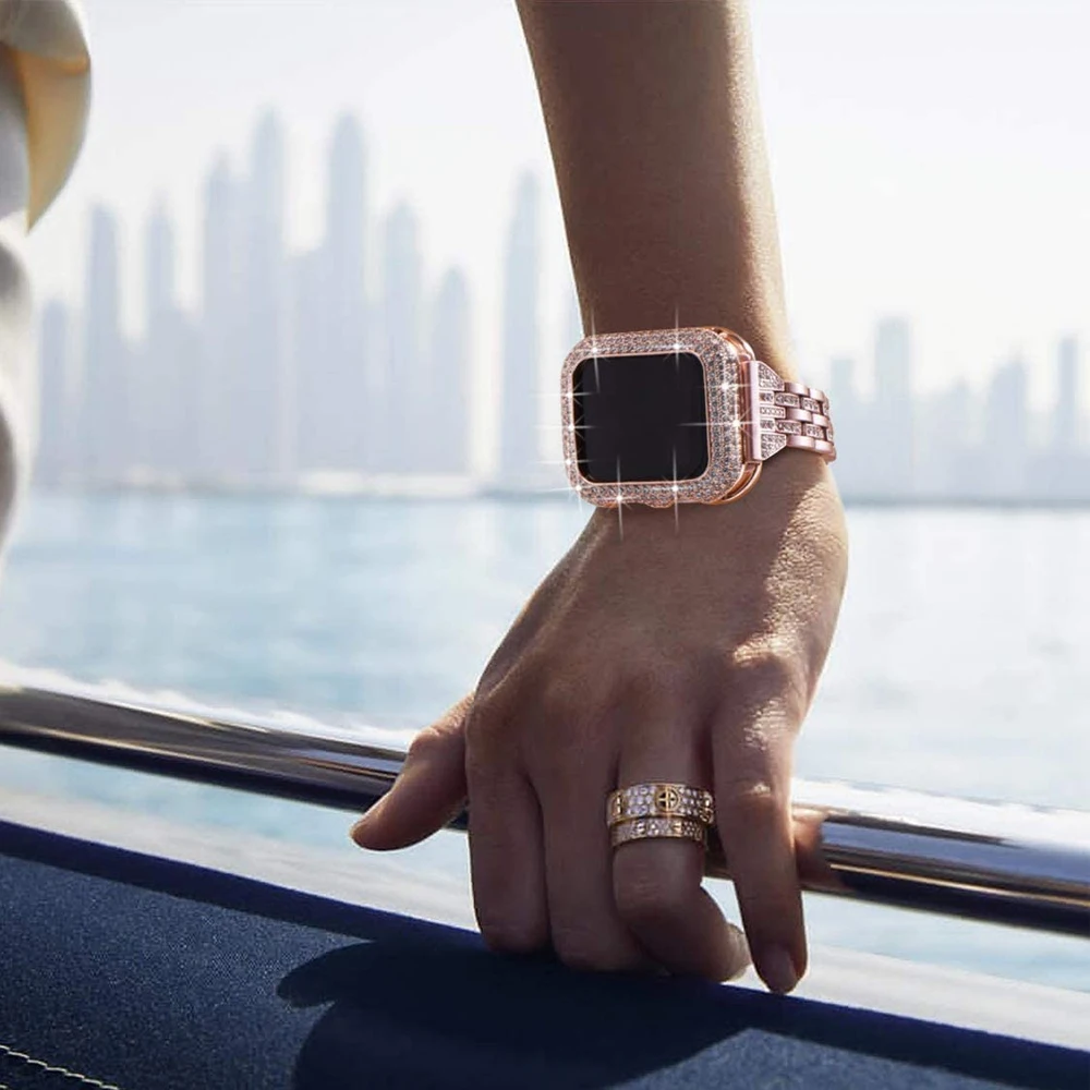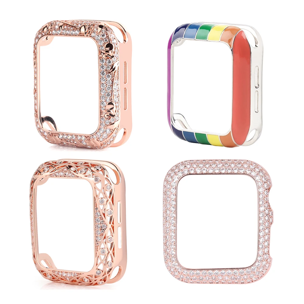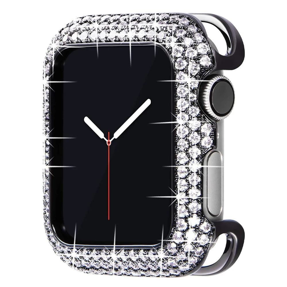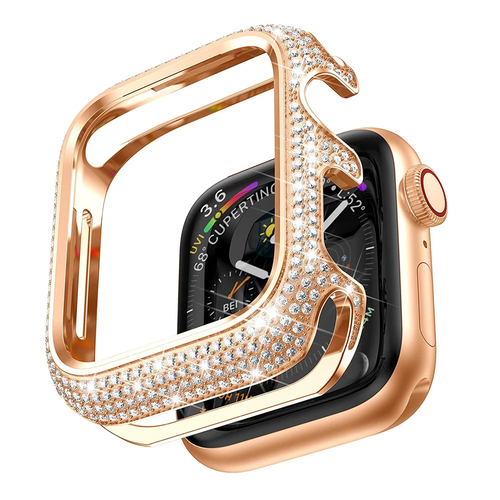 Блестящий металлический чехол для Apple Watch 44 мм 40 мм iWatch SE Series 6 5 4 3 ювелирный чехол Роскошный Бриллиантовый Безель винтажный сверкающий женский