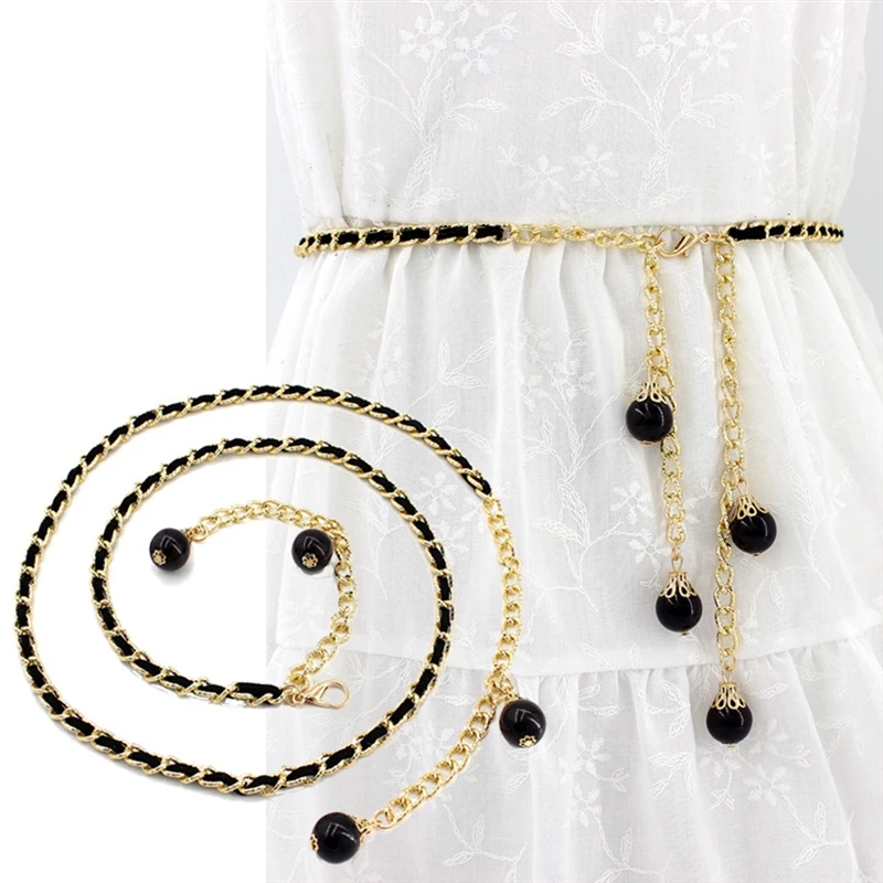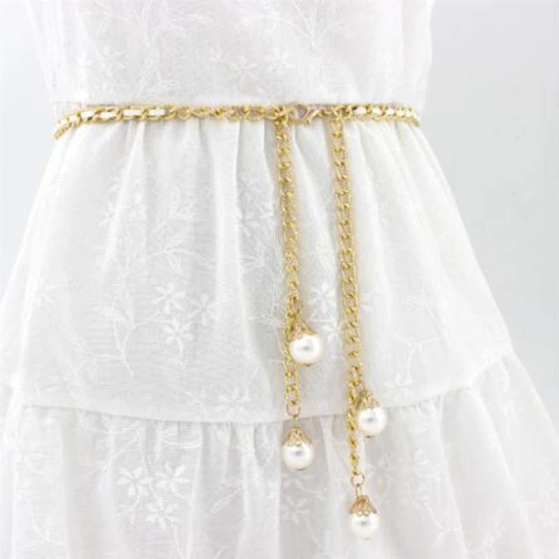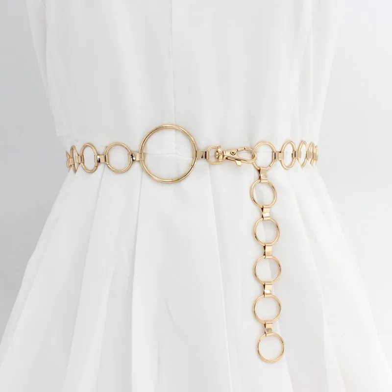 Ремень с металлической цепочкой Женский, универсальный пояс с завышенной талией, золотисто-серебристый, для вечерних украшений