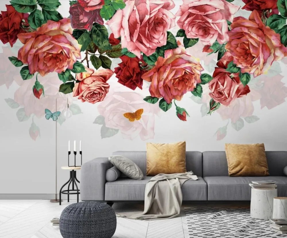 3d фотообои Bacaz для гостиной, ТВ, дивана, объемные розы