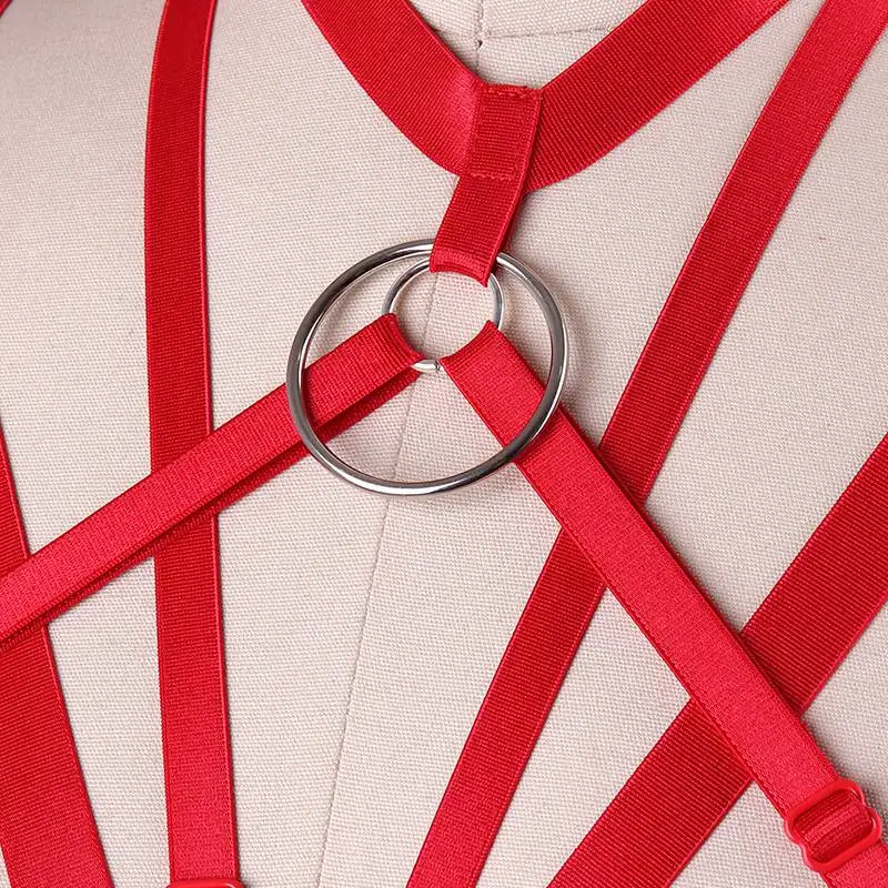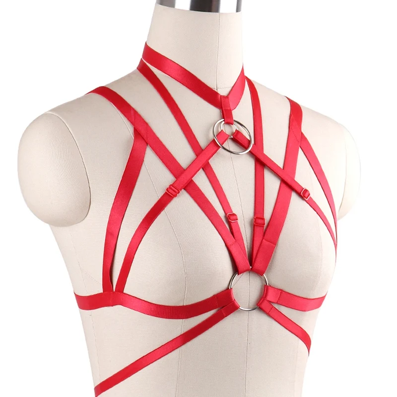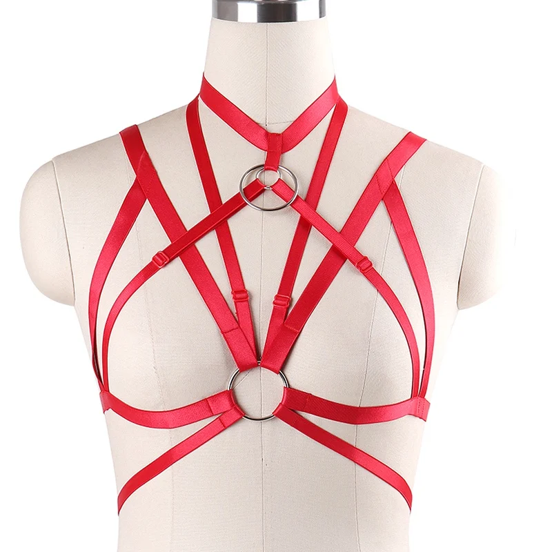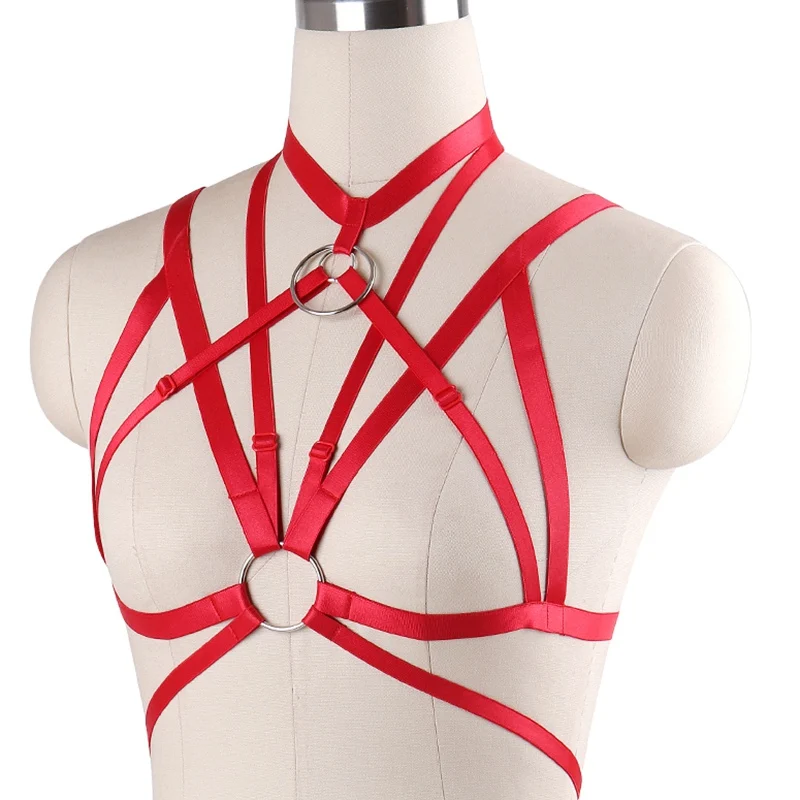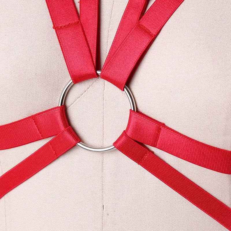 Оптовая продажа красный короткий топ бюстгальтер Для женщин полые сексуальное женское белье клетка Пояс верности кольцо в стиле Харадзюку в готическом стиле с открытой грудью бондаж страховочная система