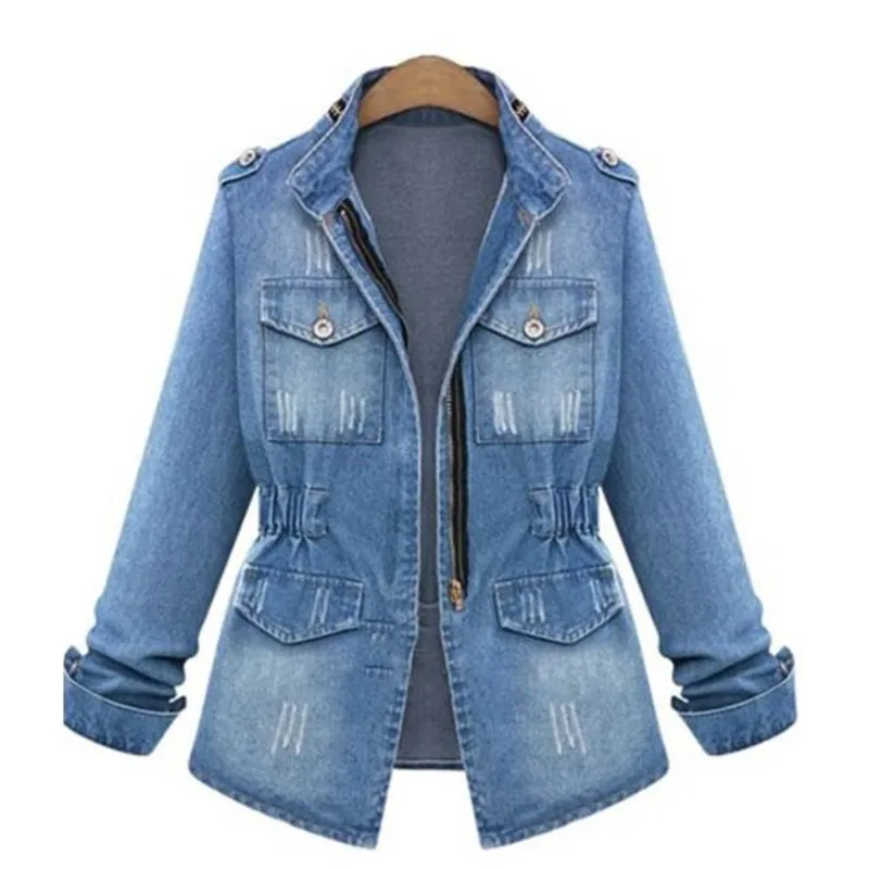 Женская джинсовая куртка, повседневная верхняя одежда из денима с длинным рукавом, 2020 5XL, осень размера плюс