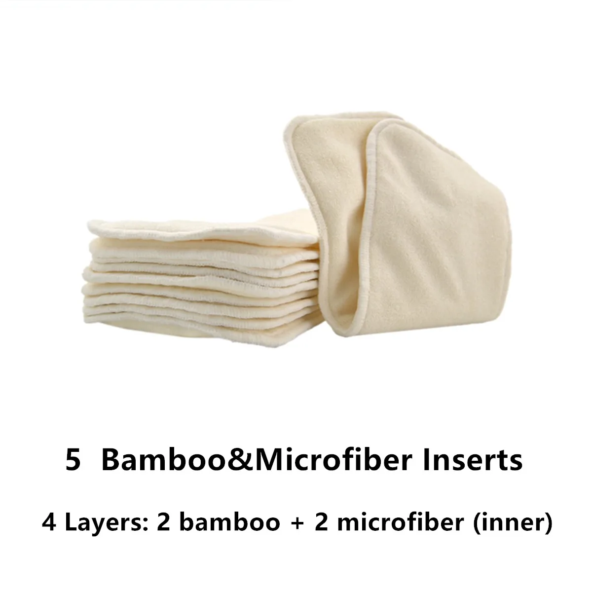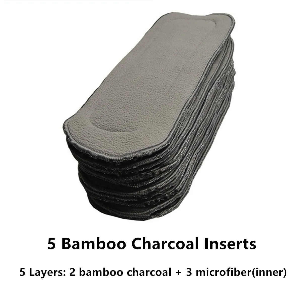 5 моющиеся Вставки Многоразовые детские тканевые подгузники, подгузники из микрофибры, бамбукового угля, обычные
