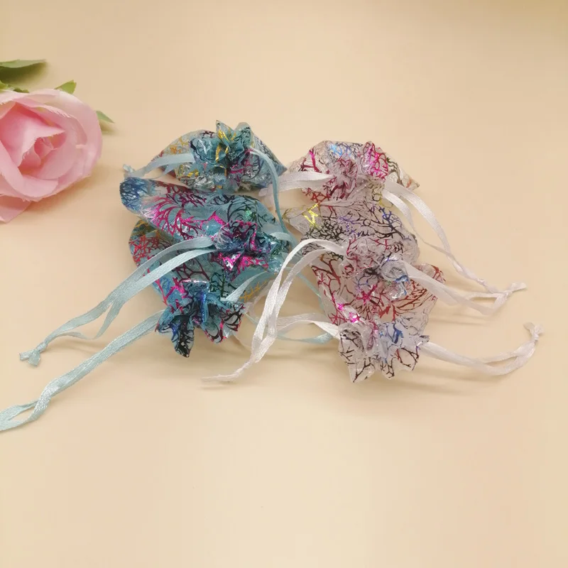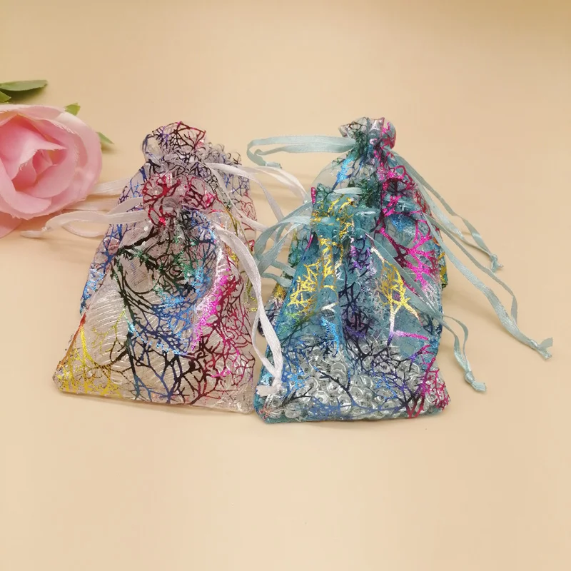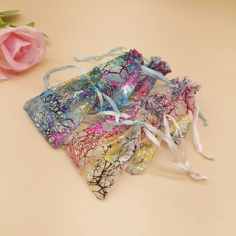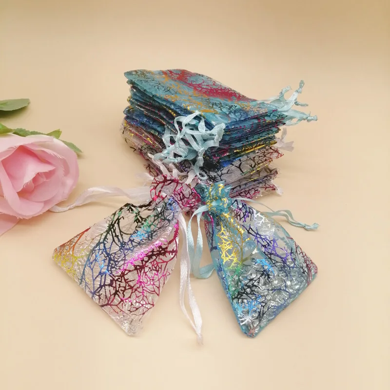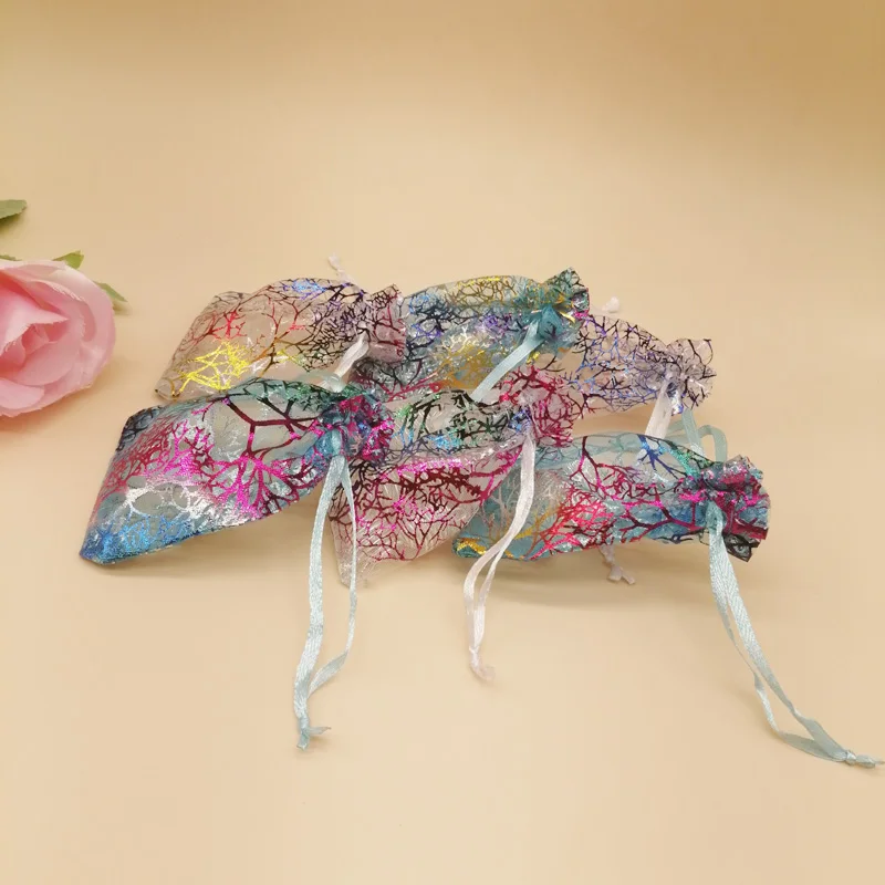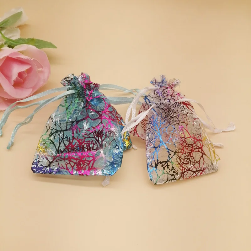 1000 шт красочные коралловые в полоску из органзы, на шнурке, кошелек; Подарочная сумочка для ткани на основе карбида кремния Christhmas Свадебная коробка для хранения ювелирных изделий, мешки для упаковки