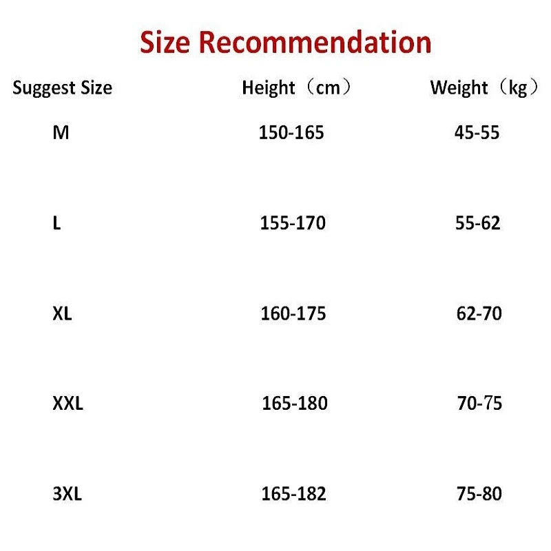 -Размер XXXL соответствует европейскому размеру L;Для роста около 165-182 см, для веса около 75-80 кг
