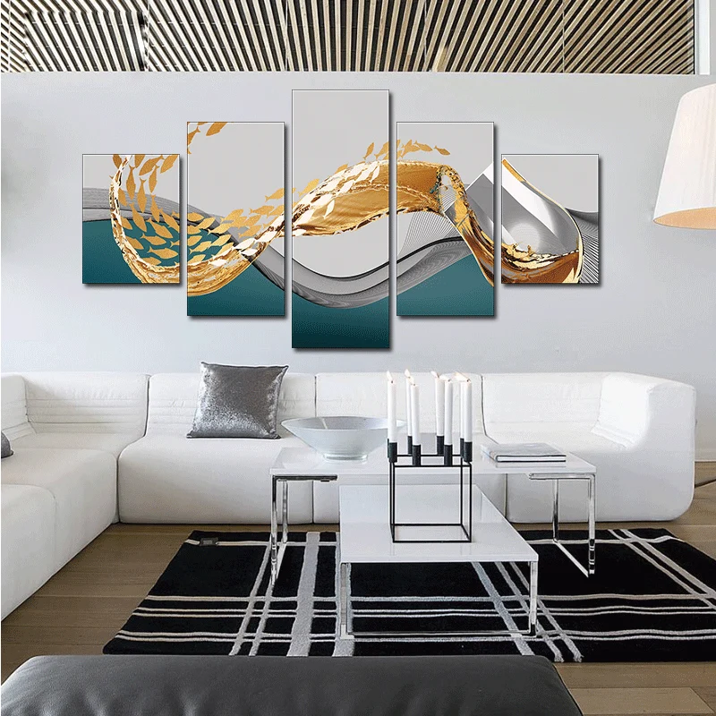 Абстрактные Роскошные художественные картины без рамки из 5 предмет...