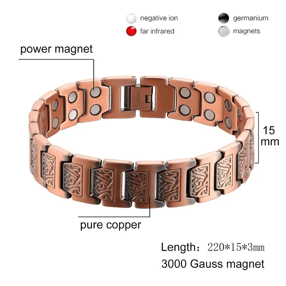 Мужской браслет из чистой меди с двойным сырьем 3000 магниты Гаусса облегчение боли для артрита магнитный браслет для здоровья силовой браслет