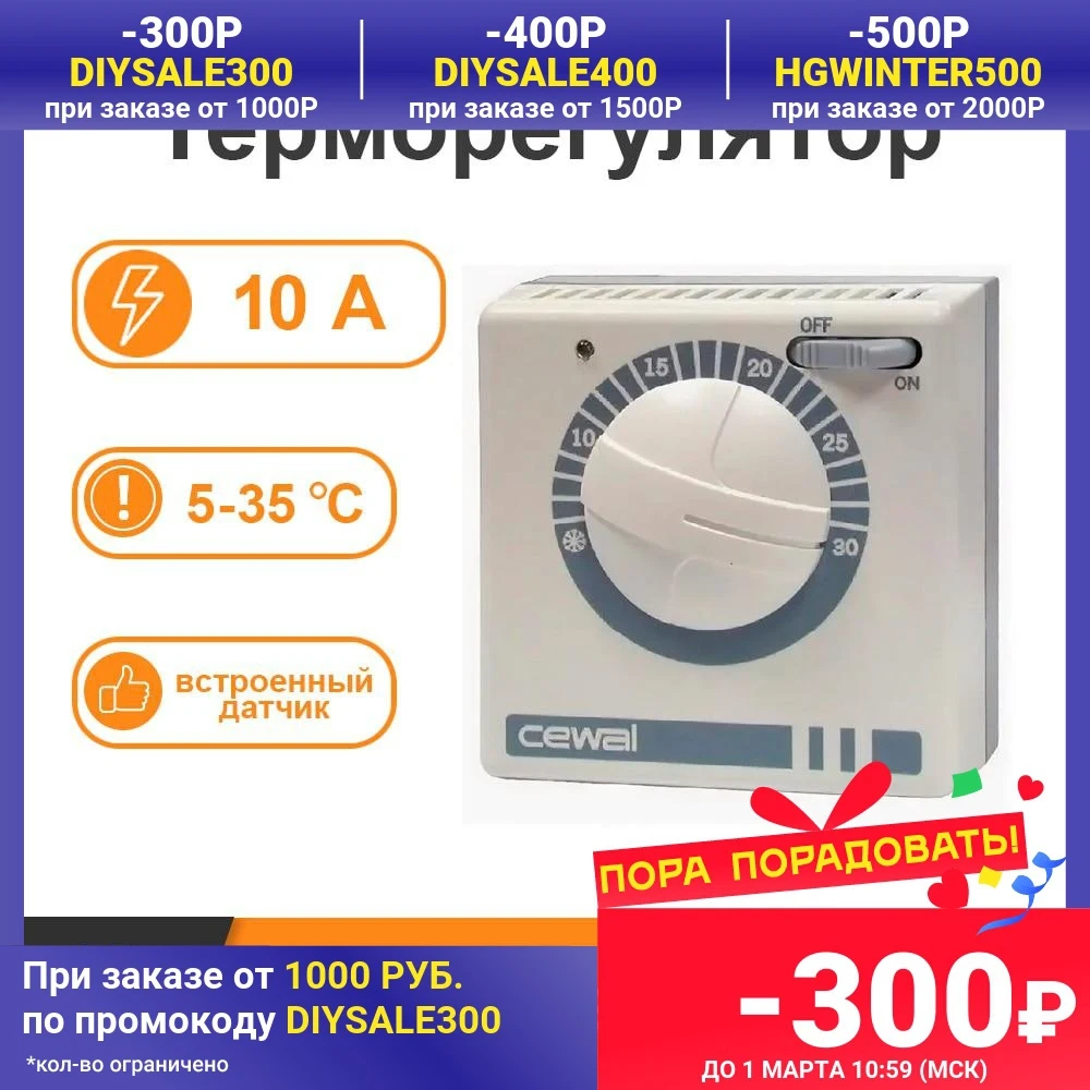 Терморегулятор CEWAL для ИК обогревателей механический, термостат накладной для котлов отопления для радиаторов отопления