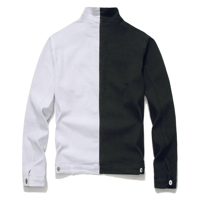 Мужская джинсовая куртка, черная, белая, двухцветная, в стиле пэчворк, приталенная, мотоциклетная, повседневная, в стиле хип-хоп