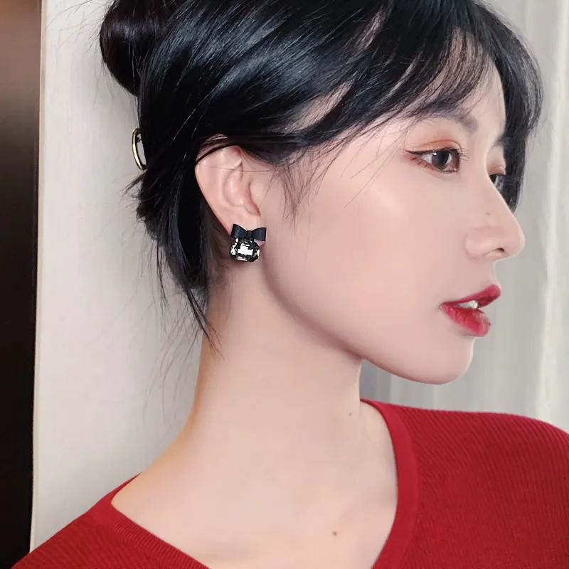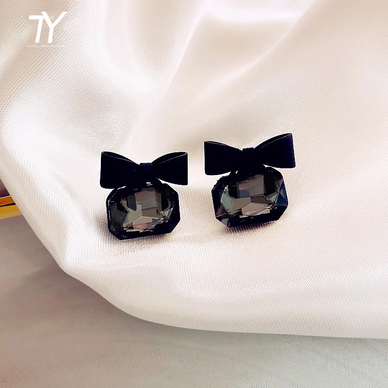 Загадочные черные серьги-подвески с бантом, сексуальные квадратные стеклянные Висячие серьги для женщин, новинка 2020, необычные серьги для девушек и модные корейские драгоценности