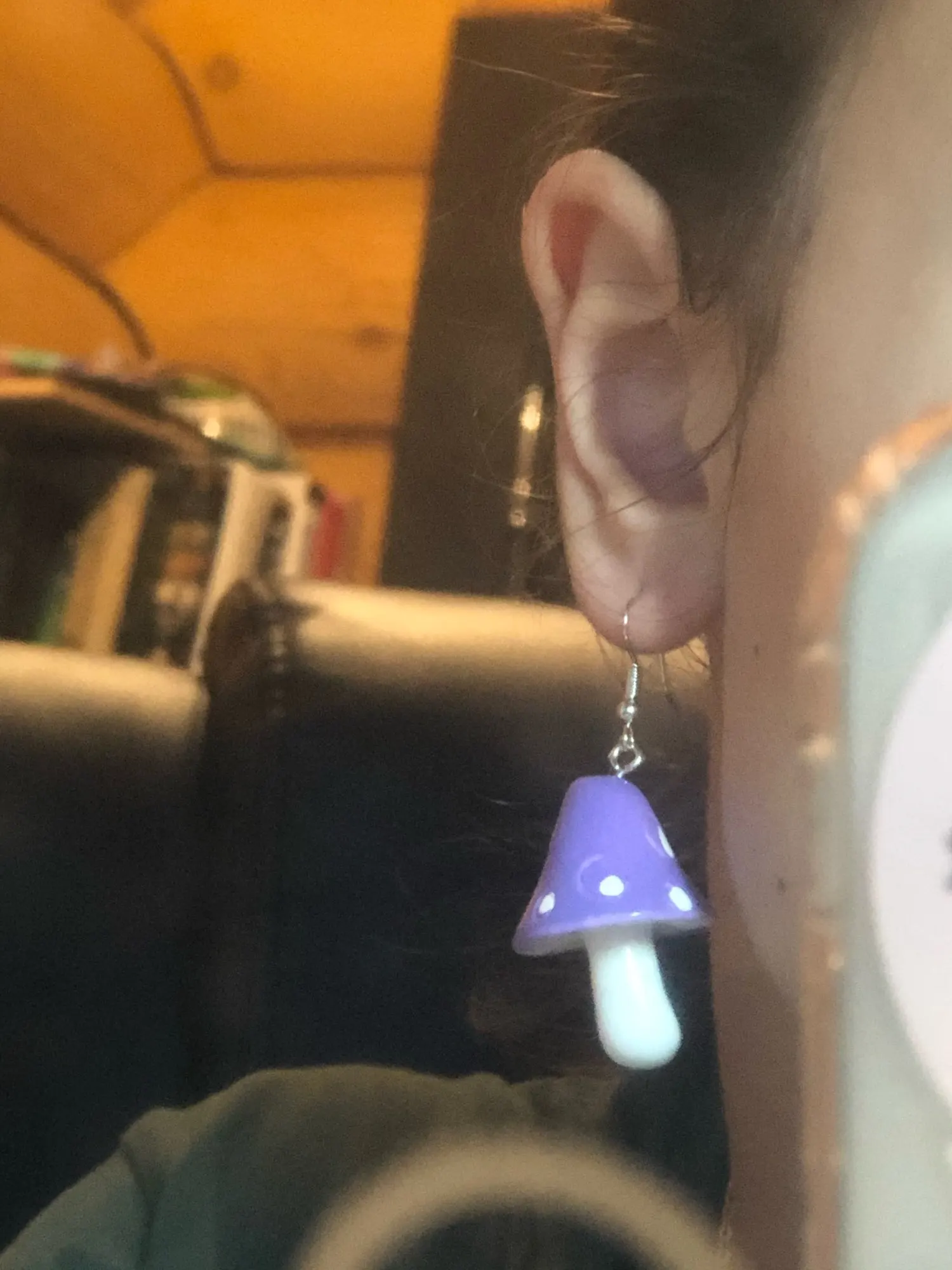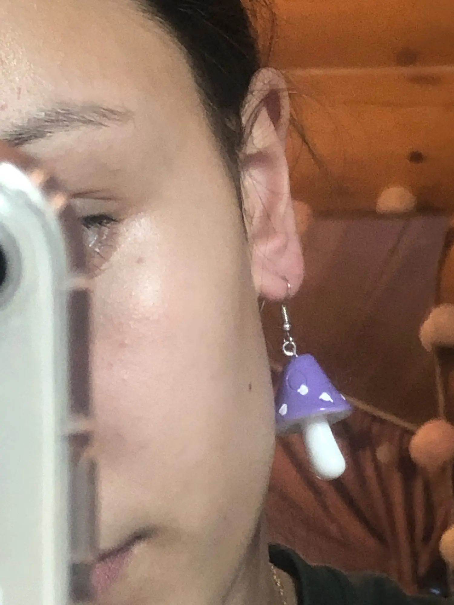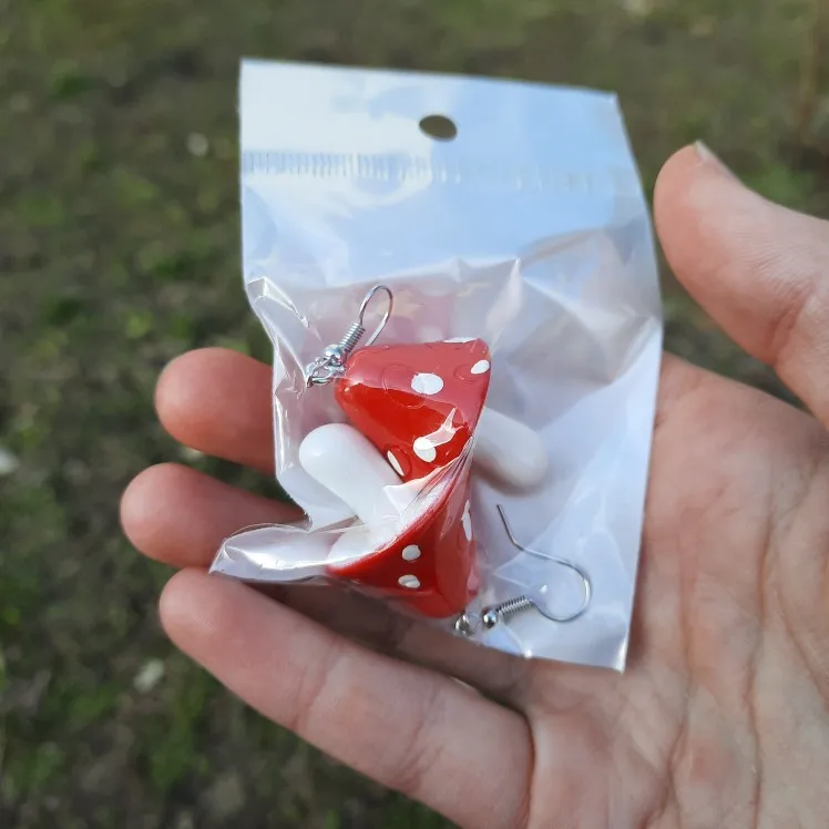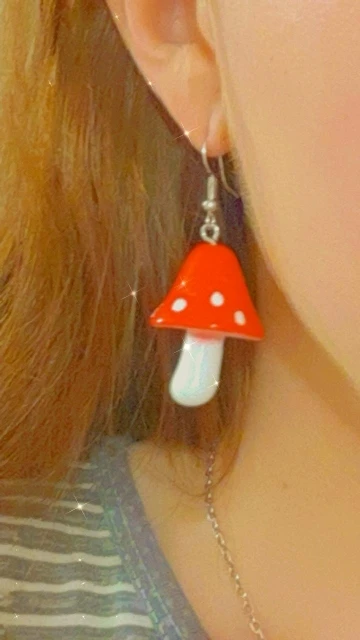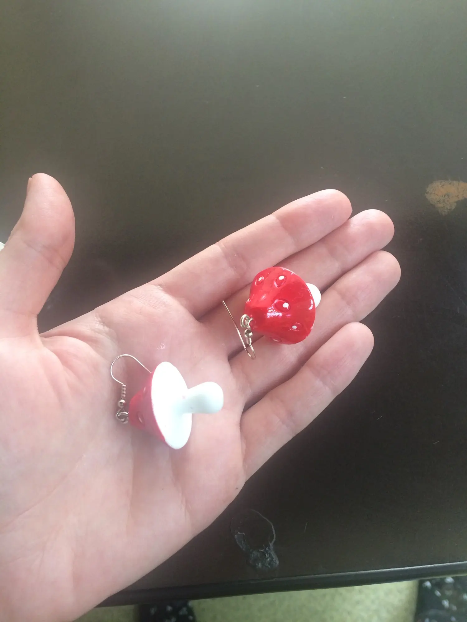 мне очень нравятся эти серëжки, миленькие. но на фотографии у продавца они ярче, чем в жизни(так они более пепельно-фиолетовые). точки нарисованы максимально неровно, что немножко отталкивает. в целом не плохо, носить можно.