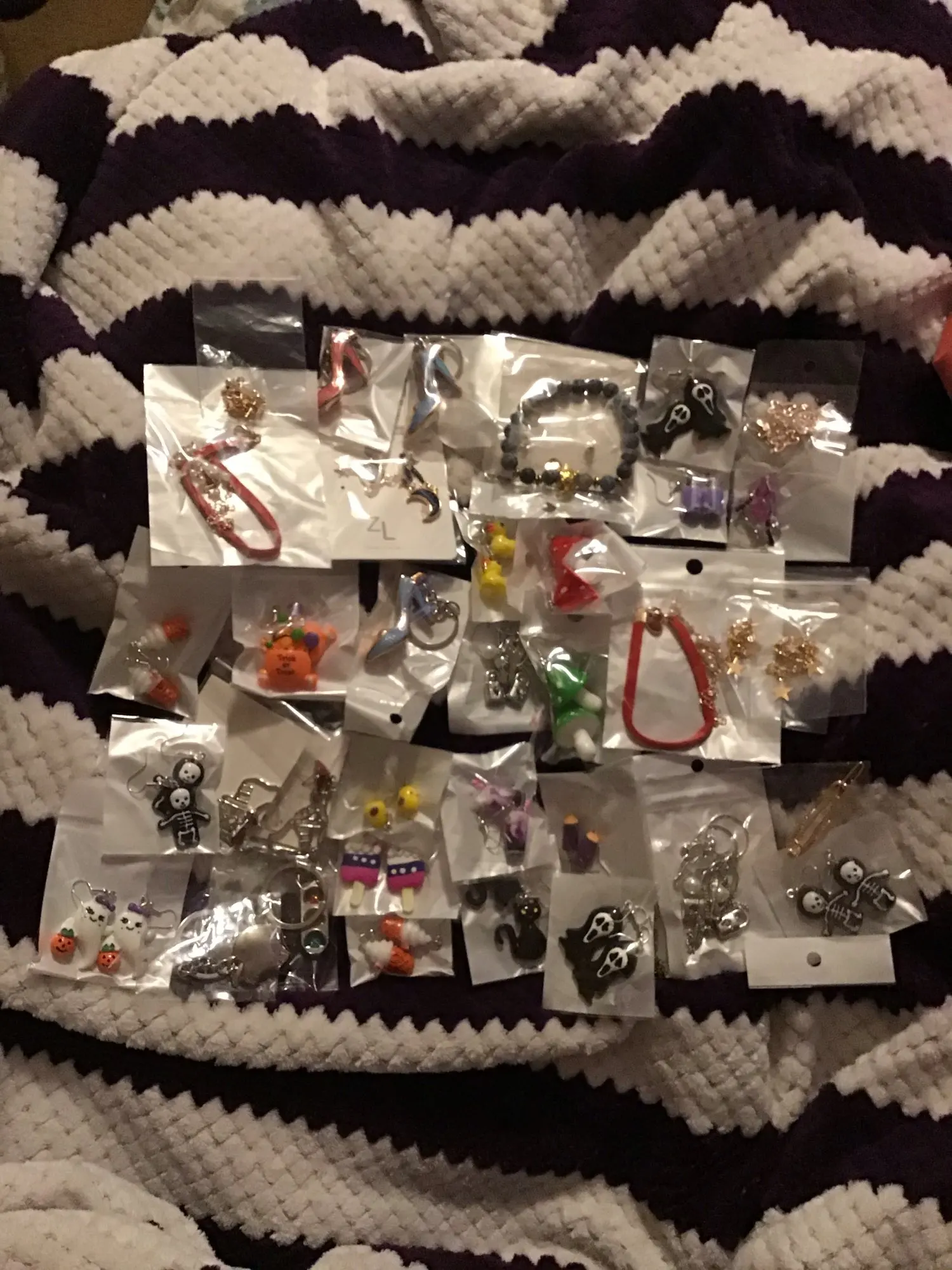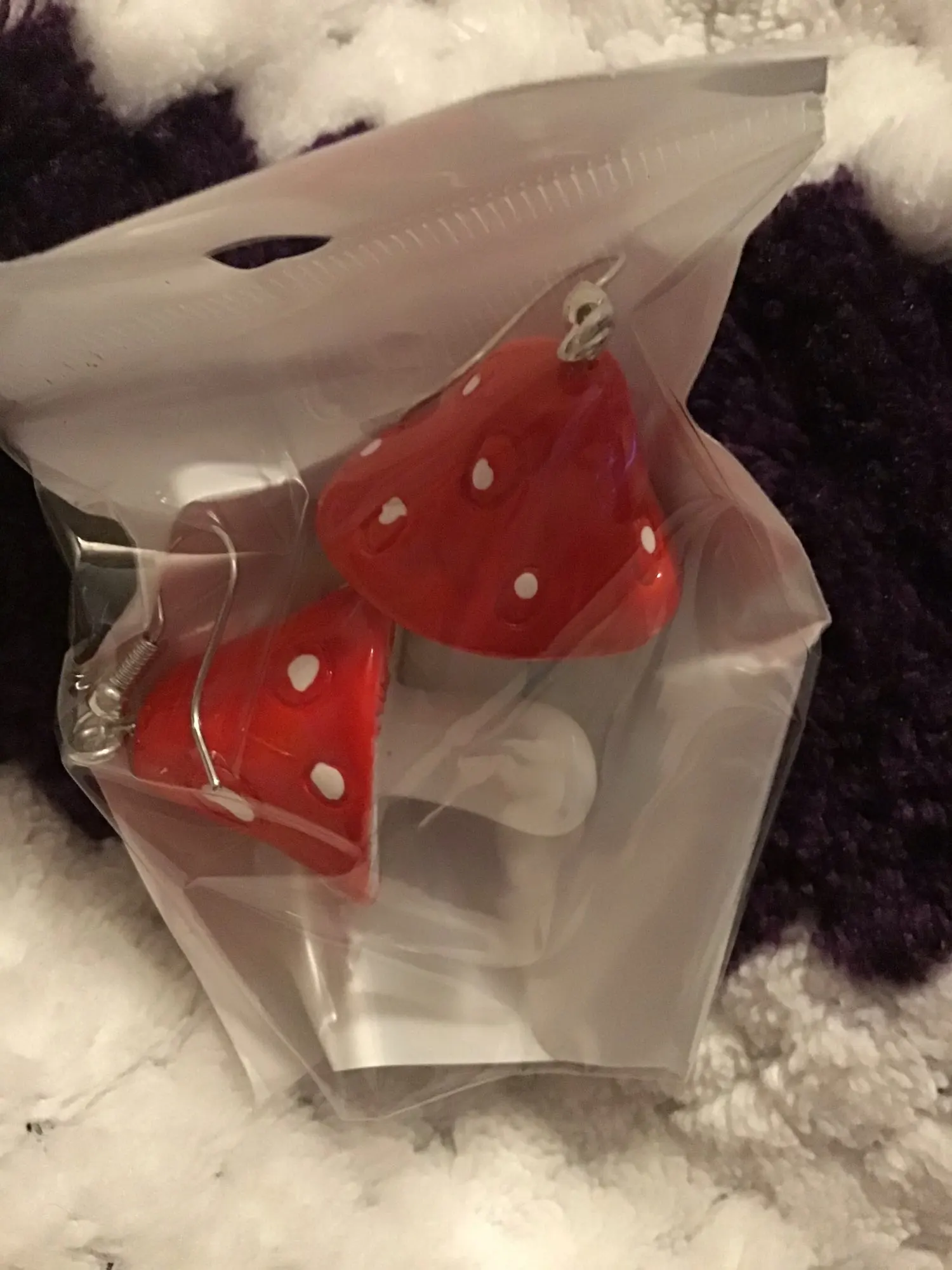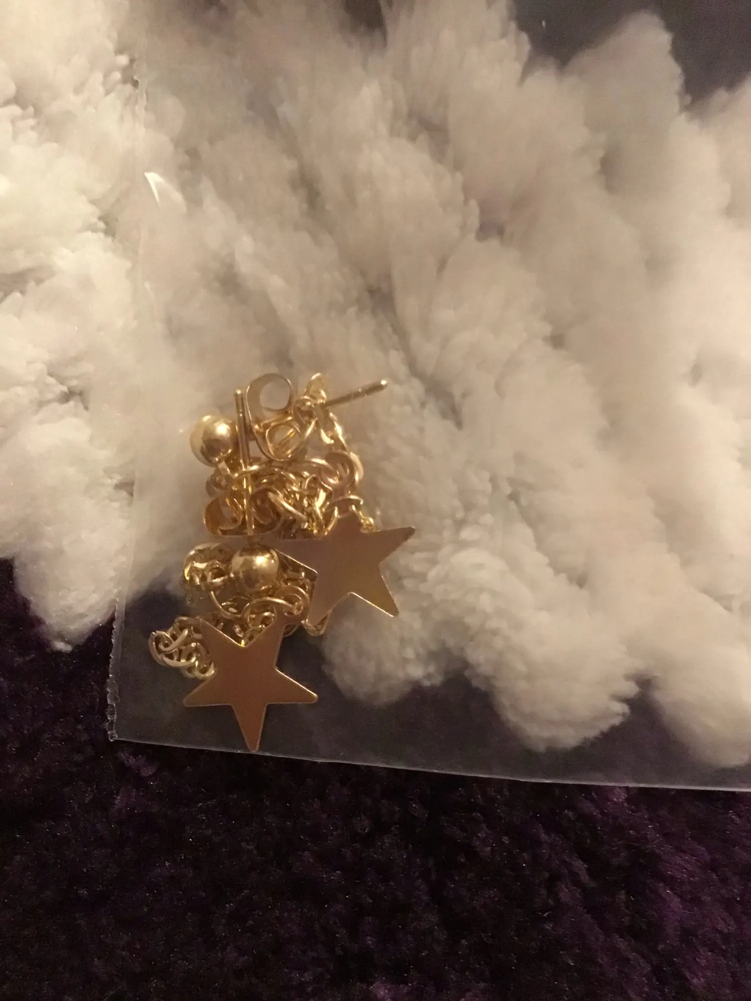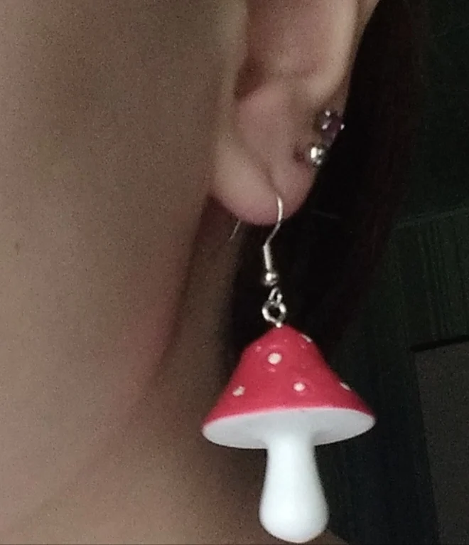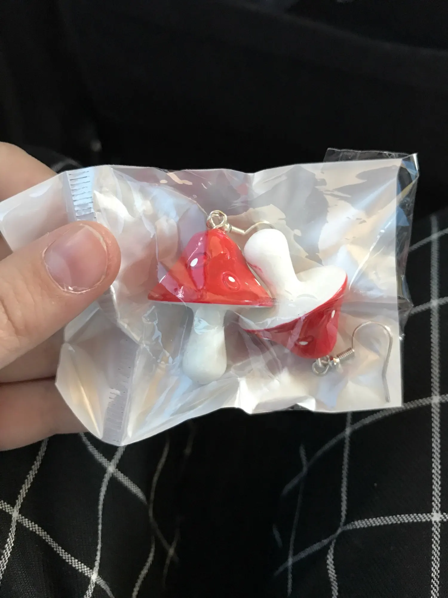мне очень нравятся эти серëжки, миленькие. но на фотографии у продавца они ярче, чем в жизни(так они более пепельно-фиолетовые). точки нарисованы максимально неровно, что немножко отталкивает. в целом не плохо, носить можно.
