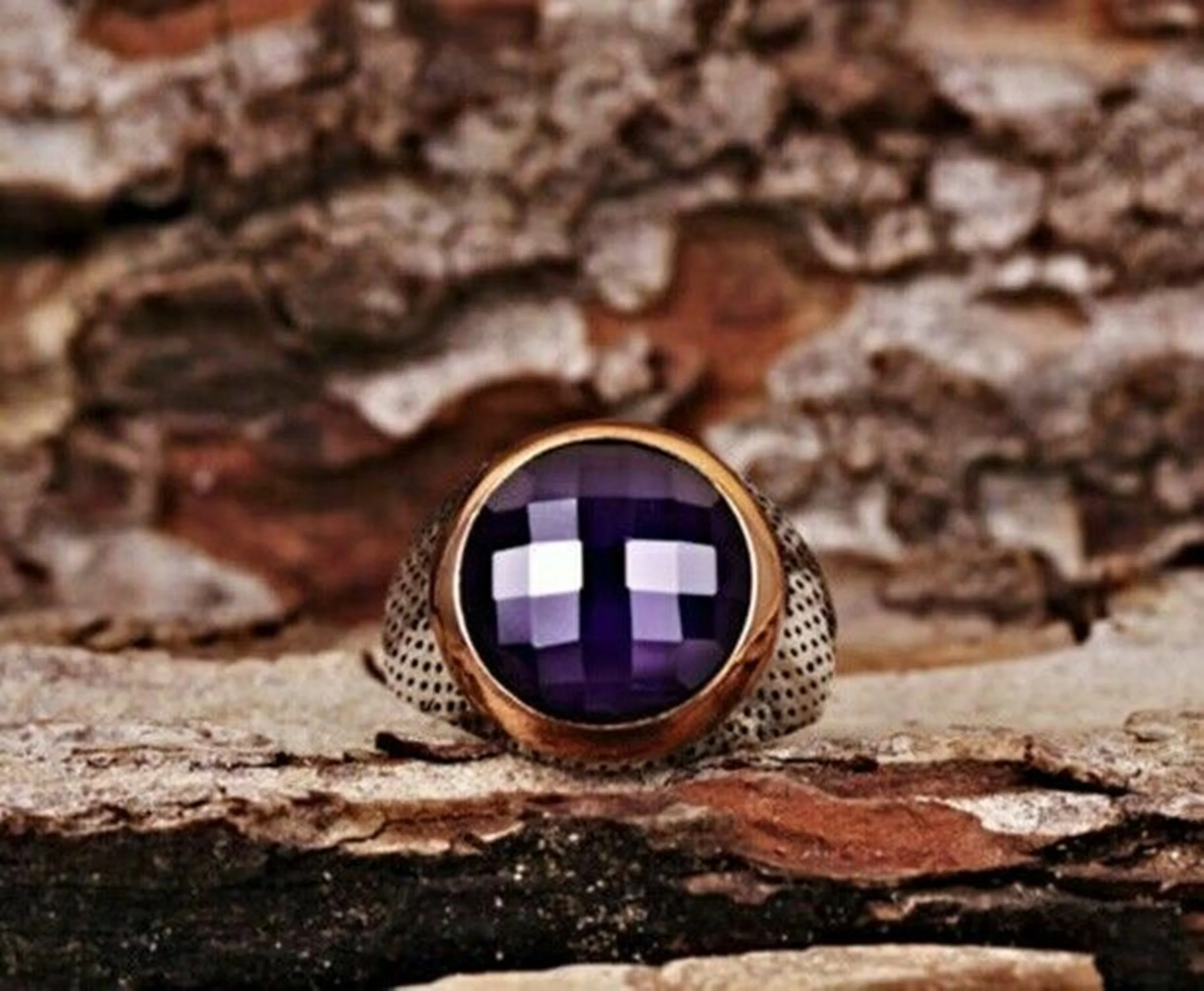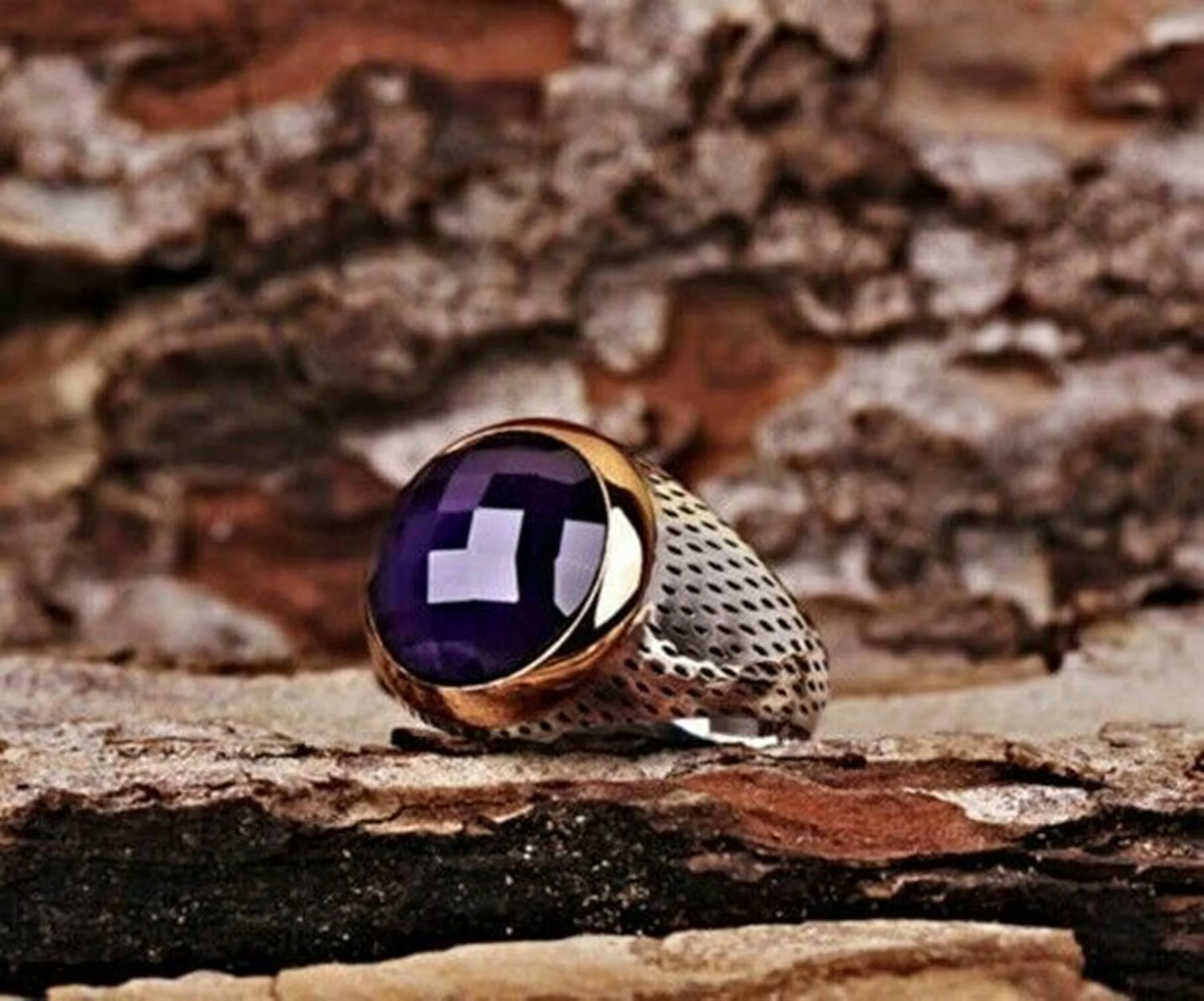 Мужское серебряное кольцо ручной работы с турецким аметистом
